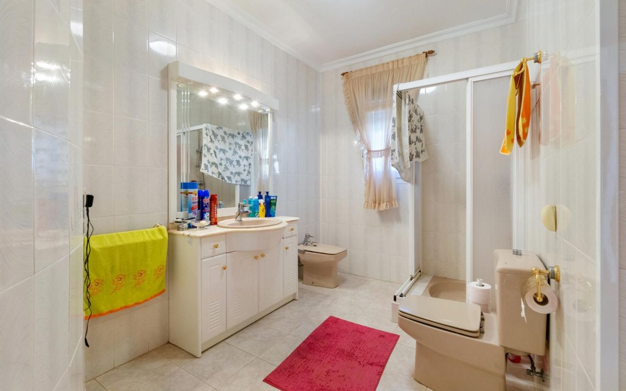 Eiendommen, som ligger i en etasje for større komfort, ønsker deg velkommen med en romslig entré som er forbundet med hovedrommene: 3 lyse soverom, ett med eget bad, og et ekstra bad. Det fullt utstyrte kjøkkenet med åpen planløsning, med bod og vaskerom, er integrert i stuen, noe som skaper et ideelt rom for familie- eller vennesamlinger. Fra stuen har du tilgang til en halvveis innglasset terrasse, perfekt for å slappe av mens du nyter de milde temperaturene på Costa Blanca.