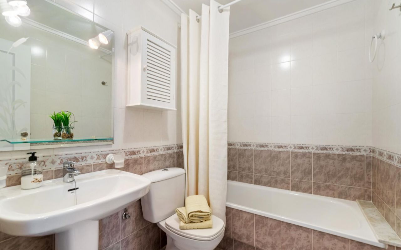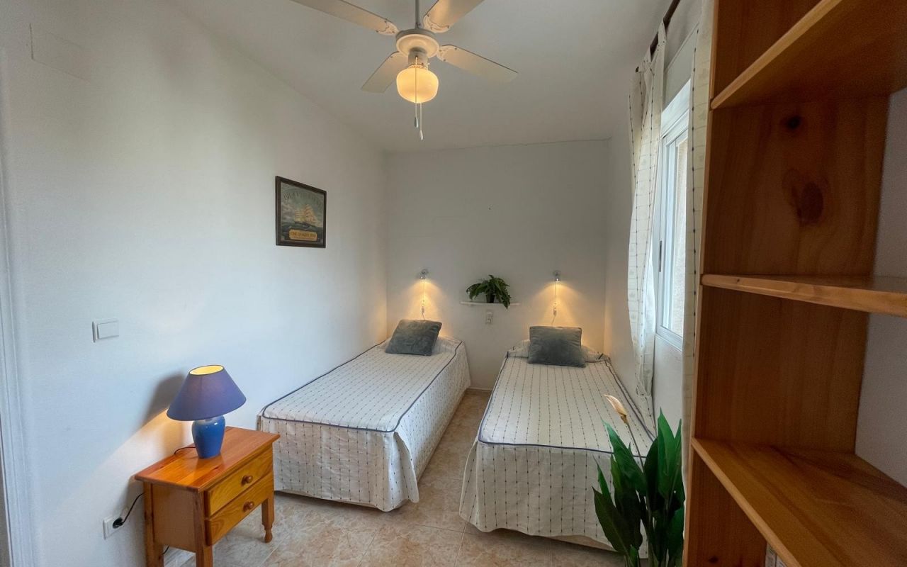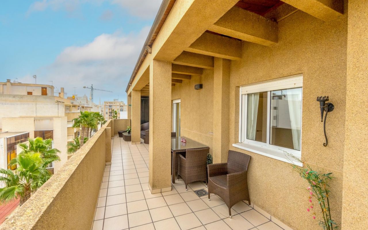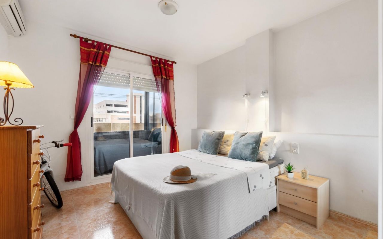 Koselig toppleilighet med 3 soverom, hovedsoverommet med eget bad og direkte tilgang til terrassen, pluss et ekstra bad. Stuen er romslig og kjøkkenet er uavhengig, begge med tilgang til en spektakulær hjørneterrasse, perfekt for utendørs frokoster, avslappende øyeblikk eller familiesammenkomster. Dette hjemmet vender mot sør, og er varmt og solrikt hele året. Boligen selges møblert og utstyrt med hvitevarer, klar til å flytte inn.