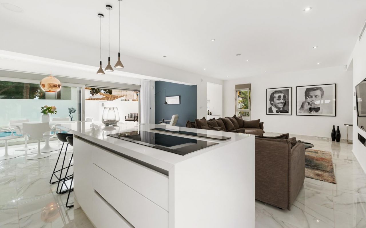 Den moderne og elegante designen skiller seg ut for sin store lysstyrke, takket være sin orientering i alle retninger. I en etasje har eiendommen 4 drømmesoverom, 3 av dem med omkledningsrom og bad med eget bad, pluss et ekstra bad for besøkende. Den meget romslige stuen-spisestuen med stor takhøyde og store vinduer tilbyr en varm og koselig atmosfære, med direkte tilgang til svømmebassenget. Det fullt utstyrte designerkjøkkenet med åpen planløsning er moderne og funksjonelt, perfekt for å nyte i selskap.