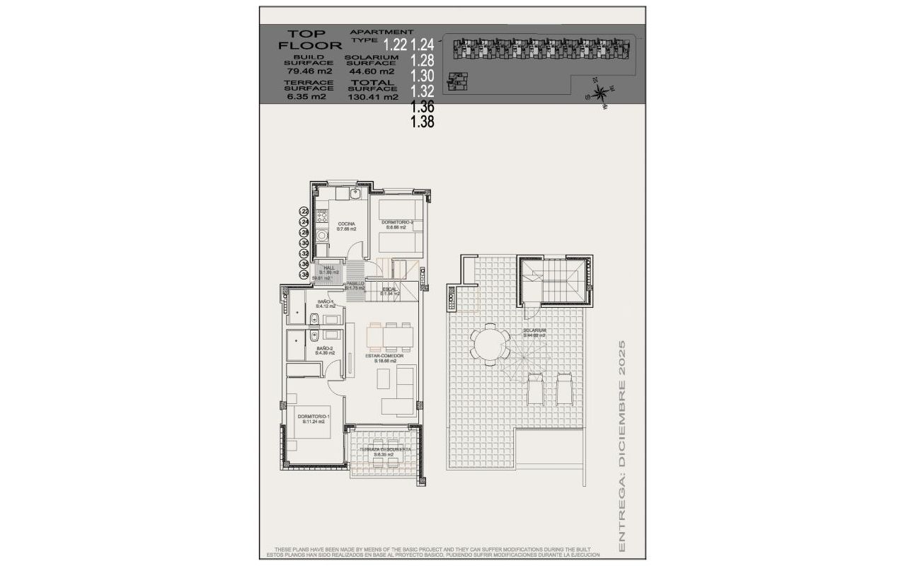 Nytt boligprosjekt i Torrevieja, bare 1 km fra sjøen Moderne leiligheter med 2 og 3 soverom Dette nye boligprosjektet ligger i det livlige Altos del Sol-området i Torrevieja, og tilbyr en rekke leilighetsalternativer med 2 og 3 soverom. Leilighetene i første etasje har private hager, mens leilighetene i toppetasjen har private solarier for eksklusiv utendørs avslapning. I tillegg omfatter komplekset ett rekkehus, som passer for dem som ønsker ekstra plass og privatliv. Hver enhet har en underjordisk parkeringsplass, og bod er tilgjengelig som tilvalg. Romslige fellesområder og familievennlige fasiliteter Boligkomplekset er gjennomtenkt utformet med store fellesarealer, med hageanlegg som skaper et fredelig miljø. Familier kan glede seg over et stort felles svømmebasseng med et eget barneområde, perfekt for avslapping og sosialt samvær under den varme middelhavssolen. Prosjektet ligger ca. 1 km fra «Playa de Los Locos», som gir beboerne praktisk tilgang til stranden. Førsteklasses finish og energieffektive funksjoner Disse boligene skiller seg ut med høy kvalitet og oppmerksomhet på detaljer. Hver enhet er utstyrt med et 600 W solcelleanlegg, noe som gir en miljøvennlig energiløsning. Andre premiumfunksjoner inkluderer innebygde griller på solterrassene, pansrede inngangsdører, innebygde garderober med innredning, baderomsmøbler med dusjvegger og gulvvarme på badene, noe som sikrer komfort og stil i hvert hjørne. Ideell beliggenhet i nærheten av tjenester og attraksjoner Dette prosjektet ligger i nærheten av alle viktige tjenester, noe som gjør det til et praktisk sted for både fastboende og ferieboligsøkere. Altos del Sol er kjent for sine gode forbindelser med lokale butikker, spisesteder og underholdningssteder innen gangavstand. Alicante-Elche lufthavn ligger en 45-minutters kjøretur unna (43 km), mens Habaneras kjøpesenter ligger bare 3 km unna, og tilbyr en omfattende shoppingopplevelse. Opplev Torreviejas middelhavsstil Torrevieja, som ligger sør i Alicante, byr på en typisk middelhavsopplevelse. Med over 300 soldager i året og en årlig gjennomsnittstemperatur på 20 ºC kan innbyggerne nyte det vakre været året rundt. Byen er kjent for sin rike gastronomi, med ferske ingredienser fra både havet og lokale gårder. I tillegg kan Torrevieja skilte med naturskjønne strender, promenader, museer og en rekke aktiviteter som passer for barnefamilier, noe som sikrer en livsstil fylt med fritid og avslapning. Kom og utforsk Torrevieja Enten du er ute etter et pulserende kystsamfunn eller et fredelig tilfluktssted, gir dette prosjektet deg en unik mulighet til å nyte det beste av Torreviejas kystsjarm. Opplev alt denne vakre byen har å by på, fra det varme klimaet til den rike kulturelle og kulinariske arven.