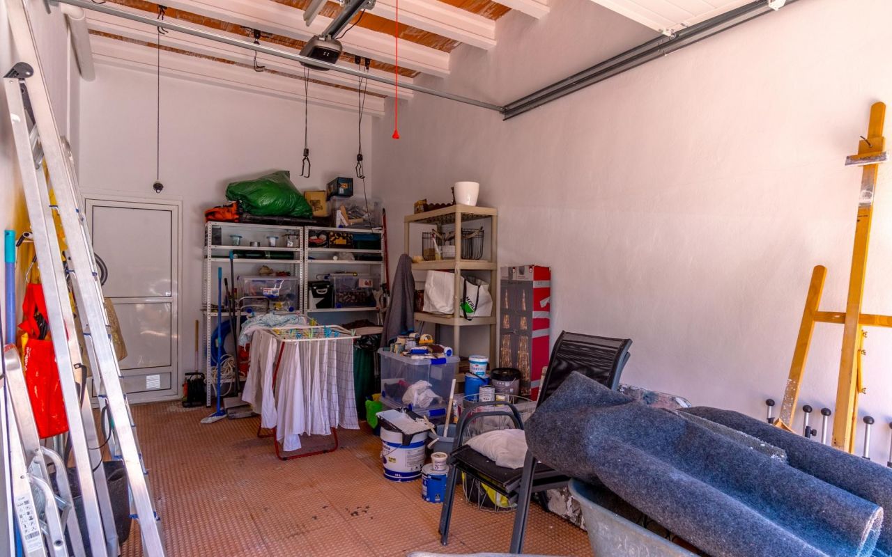 I tillegg har eiendommen lukket garasje med elektrisk port med plass til en bil. Videre er det plass til 2 biler til på tomten.