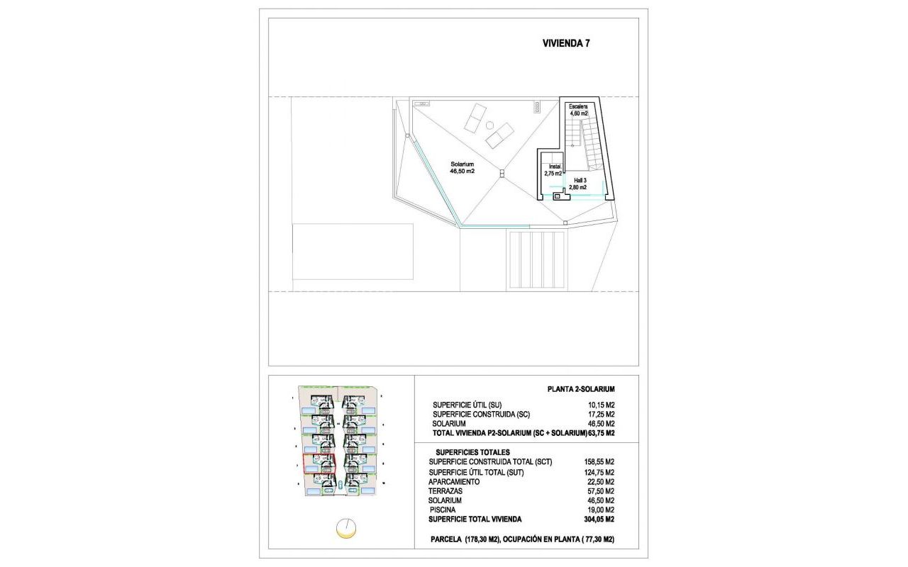 Hver villa er fordelt på to etasjer pluss en solterrasse på taket og inkluderer: