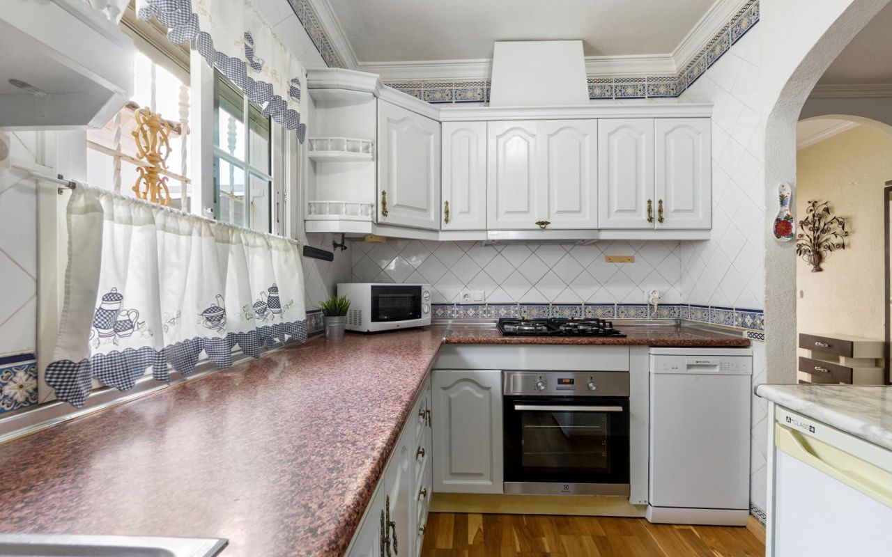 Vi presenterer denne sjarmerende boligen med 303 m² privat tomt, beliggende i et av de mest ettertraktede områdene ved Orihuela Costa: Playa Flamenca. Her kan du nyte et fantastisk klima året rundt, med over 300 soldager og behagelige temperaturer som inviterer til et liv utendørs.