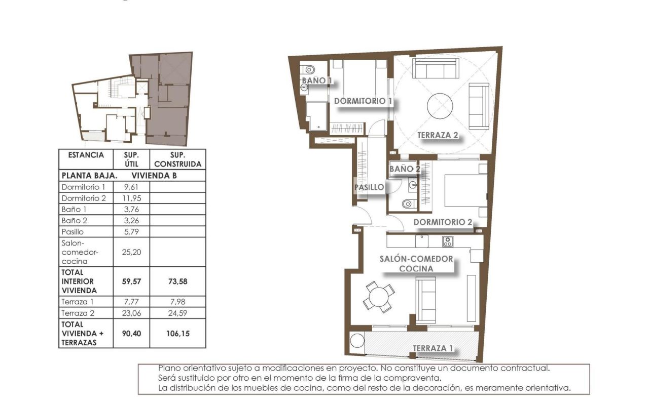 Moderne leiligheter til salgs Bare 250 m fra El Cura-stranden i Torrevieja, Costa Blanca Eksklusivt nytt boligprosjekt nær sjøen Dette nye boligkomplekset med 16 moderne boliger er designet for å fange essensen av middelhavslivet. Beliggende bare 250 meter fra El Cura-stranden i Torrevieja (Alicante), tilbyr dette boligprosjektet en perfekt blanding av komfort, design og beliggenhet. Med alle tjenester i nærheten og gode offentlige transportforbindelser, inkludert hovedbusstasjonen innen gangavstand, er dette et ideelt sted både for helårsbeboelse og ferier ved sjøen. Moderne design og funksjonelle boarealer Utbyggingen omfatter en rekke leiligheter med 1 eller 2 soverom og 1 eller 2 bad, med forskjellige planløsninger som passer til alle livsstiler. Hver bolig er preget av lyse, åpne rom, elegant finish og utmerket byggekvalitet. Funksjonene inkluderer innebygde garderober, forhåndsinstallert luftkondisjonering, heis og materialer av høy kvalitet overalt. Leilighetene i første etasje og standardleilighetene har private terrasser som er ideelle for å slappe av utendørs, mens penthouse-leilighetene har romslige private solterrasser – perfekte for soling, middager eller for å nyte de vakre middelhavssolnedgangene. Eksklusive fellesarealer for din nytelse Boligkomplekset er designet for komfort og sosialt liv. Beboerne kan nyte et spektakulært fellesområde på taket med svømmebasseng, solplasser med solsenger og anlagte områder – et fredelig tilfluktssted for sommeravslapning. Førsteklasses beliggenhet i Torrevieja Torrevieja er et av de mest populære reisemålene på Costa Blanca, kjent for sine krystallklare strender, behagelige klima året rundt og livlige atmosfære ved sjøen. Å bo her betyr å nyte daglige spaserturer langs promenaden, spise på restauranter ved stranden og oppleve den autentiske middelhavsstilen. Avstander til viktige severdigheter El Cura-stranden: 250 m Torrevieja marina og havn: 2 km Las Habaneras kjøpesenter: 3 km Nærmeste golfbaner: 7–10 km Alicante-Elche flyplass: 45 km Det perfekte hjemmet ved sjøen Enten du er på utkikk etter en permanent bolig, et feriehus eller en smart investeringsmulighet, tilbyr disse nybygde leilighetene i Torrevieja den perfekte kombinasjonen av moderne livsstil, kystens sjarm og bekvemmelighet. Kontakt oss i dag for mer informasjon eller for å avtale et besøk og sikre deg ditt drømmehus bare noen skritt fra El Cura-stranden i Torrevieja.