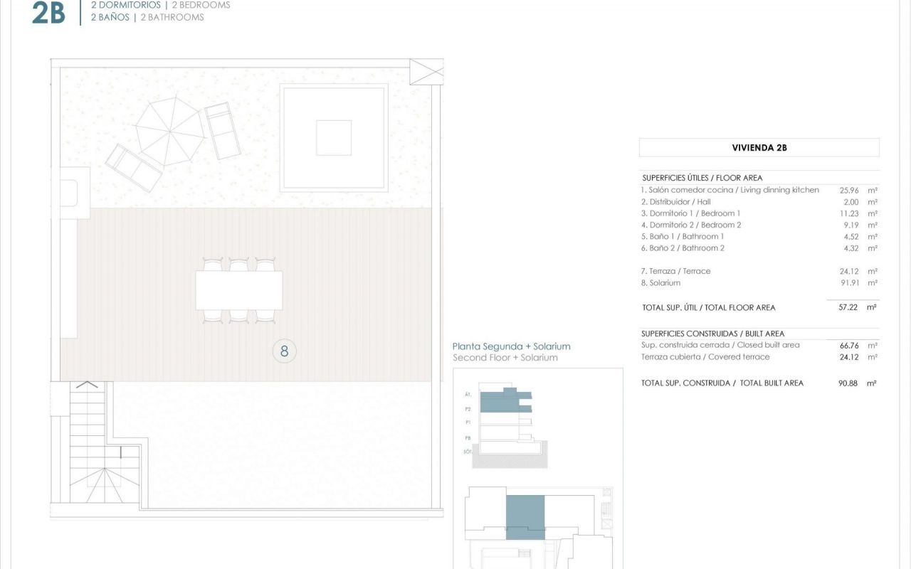 Nybyggede leiligheter i Benijofar med sentral beliggenhet Moderne boligliv i Benijofar Dette eksklusive nybyggprosjektet i Benijofar tilbyr bare 11 moderne boliger designet for å kombinere moderne arkitektur, komfort og materialer av høy kvalitet. Prosjektet omfatter leiligheter i første og andre etasje med romslige terrasser, samt penthouse-leiligheter med terrasser og private solarium. Beliggende i et sentralt, men likevel fredelig område i Benijofar og vendt mot en stor grønn sone, nyter boligkomplekset godt av utmerket naturlig lys hele dagen og en behagelig åpen utsikt. Moderne leiligheter med førsteklasses funksjoner Hver eiendom er nøye designet for å oppfylle høye standarder for kvalitet og funksjonalitet. Alle boliger har privat garasjeplass og bod i kjelleren, med praktisk heisadgang. Beboerne kan også nyte et stilfullt felles svømmebasseng omgitt av anlagte fellesområder, ideelt for avslapning og sosialt samvær. Toppetasjene skiller seg ut med sine romslige solarium, som gir mulighet for å installere et utekjøkken og har boblebad, noe som skaper et unikt uterom som er perfekt for underholdning eller avslapning under middelhavssolen. Høy kvalitet og energieffektivitet Boligkomplekset er bygget med stor vekt på holdbarhet, effektivitet og moderne estetikk. Funksjonene inkluderer: Forhåndsinstallert luftkanal for klimaanlegg og oppvarming Utvendig snekkerarbeid med termisk isolasjon og doble vinduer Aerotermisk system for varmt vann Møblerte kjøkken med hvitevarer inkludert Innvendig og utvendig belysningspakke inkludert Bad med servantskap, speil og dusjvegger Boblebad inkludert i penthouse-solariumene Hver detalj er valgt for å sikre et komfortabelt, effektivt og elegant bomiljø. Benijofar Livsstil og beliggenhet Benijofar er en av de mest sjarmerende byene i Vega Baja-området, kjent for sin avslappede atmosfære, sikkerhet og utmerkede livskvalitet. Alle daglige tjenester som supermarkeder, skoler, legesentre, restauranter og fritidsområder ligger innen 5 minutter. Byen tilbyr den perfekte balansen mellom tradisjonelt spansk liv og moderne fasiliteter. Viktige avstander til interessante steder Guardamar del Segura-strendene: 8 km La Finca og La Marquesa golfbaner: 6 km Rojales vannpark: 4 km Zenia Boulevard kjøpesenter: 17 km Alicante flyplass: 35 km Ditt nye hjem på Costa Blanca venter Disse nybygde leilighetene i Benijofar tilbyr en eksepsjonell kombinasjon av beliggenhet, kvalitet og design. Kontakt oss i dag for å avtale en visning og sikre deg ditt nye hjem på Costa Blanca.