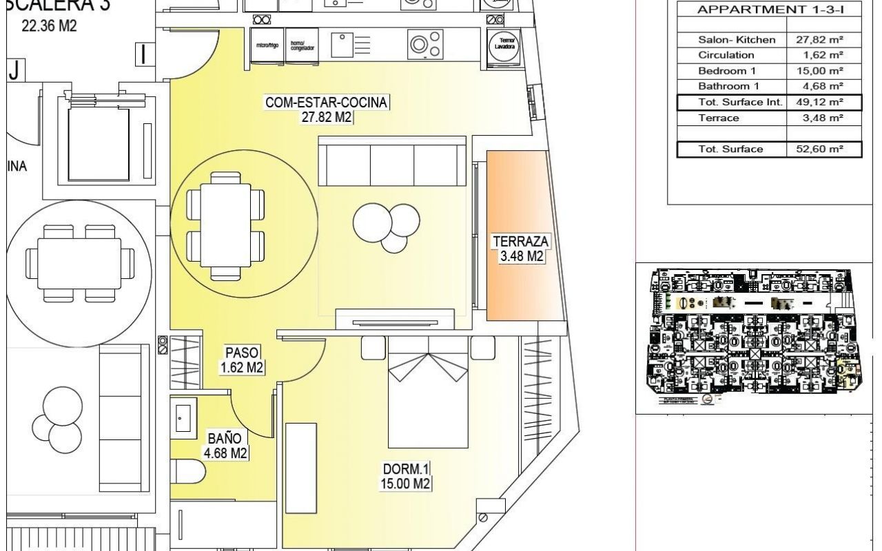 Moderne nybyggede leiligheter i sentrum av San Miguel de Salinas Moderne livsstil i et sunt middelhavsmiljø Dette nye boligprosjektet ligger i den sjarmerende byen San Miguel de Salinas, bare 10 km fra Middelhavet, og tilbyr den perfekte balansen mellom moderne komfort og naturlige omgivelser. Området er kjent for sine nærliggende saltsjøer og sitt eksepsjonelle mikroklima, som regnes som et av de sunneste i Europa. Denne fredelige, men livlige byen lar innbyggerne nyte den autentiske middelhavsstilen, samtidig som de har gangavstand til butikker, restauranter, supermarkeder og alle nødvendige tjenester. San Miguel de Salinas ligger litt inne i landet på Costa Blanca Sør, og tilbyr åpen utsikt, frisk luft og enkel tilgang til strender, golfbaner og shoppingområder. Stilfulle leiligheter designet for komfort og effektivitet Prosjektet består av to moderne bygninger adskilt av et felles hageområde. Totalt er det 56 moderne leiligheter med 1, 2 eller 3 soverom, hver med egen terrasse. Alle boligene er designet med tanke på komfort, estetikk og energieffektivitet, med bruk av materialer av høy kvalitet og moderne isolasjonssystemer. Hver leilighet har: Pansret inngangsdør Bad med servantskap Forhåndsinstallert luftkanal-klimaanlegg Energisertifikat klasse A Planløsningen og orienteringen av boligene sikrer naturlig lys hele dagen, og skaper lyse og innbydende interiører som er ideelle både for permanent boende og feriebruk. Eksepsjonelle fellesarealer for avslapning og sosialt liv Fellesarealet i første etasje er designet som det sosiale hjertet i prosjektet, omgitt av anlagte hager, sittegrupper, sykkelparkering og en lekeplass for barn. Det er et ideelt møtested for beboere i alle aldre. På taket venter et imponerende fritidsområde på 350 m2. Dette området inkluderer et 70 m2 stort svømmebasseng med et separat barnebasseng, pergolaer, solsenger og skyggefulle områder, slik at beboerne kan slappe av mens de nyter panoramautsikten. Taket er lett tilgjengelig med en av de tre heisene og inkluderer sanitæranlegg for ekstra komfort. Utmerket beliggenhet nær viktige severdigheter Middelhavsstrender 10 km Zenia Boulevard kjøpesenter 9 km Villamartin Golf 6 km Las Colinas Golf 8 km Torrevieja Marina 12 km Alicante lufthavn 60 km Murcia Corvera lufthavn 55 km En smart investering i Costa Blanca Sør Dette boligkomplekset kombinerer moderne arkitektur, kvalitetsfinish og en førsteklasses sentral beliggenhet, noe som gjør det til et utmerket valg for å bo, nyte ferien eller investere i utleie. Kontakt oss i dag for mer informasjon eller for å avtale en visning av disse moderne leilighetene i San Miguel de Salinas.