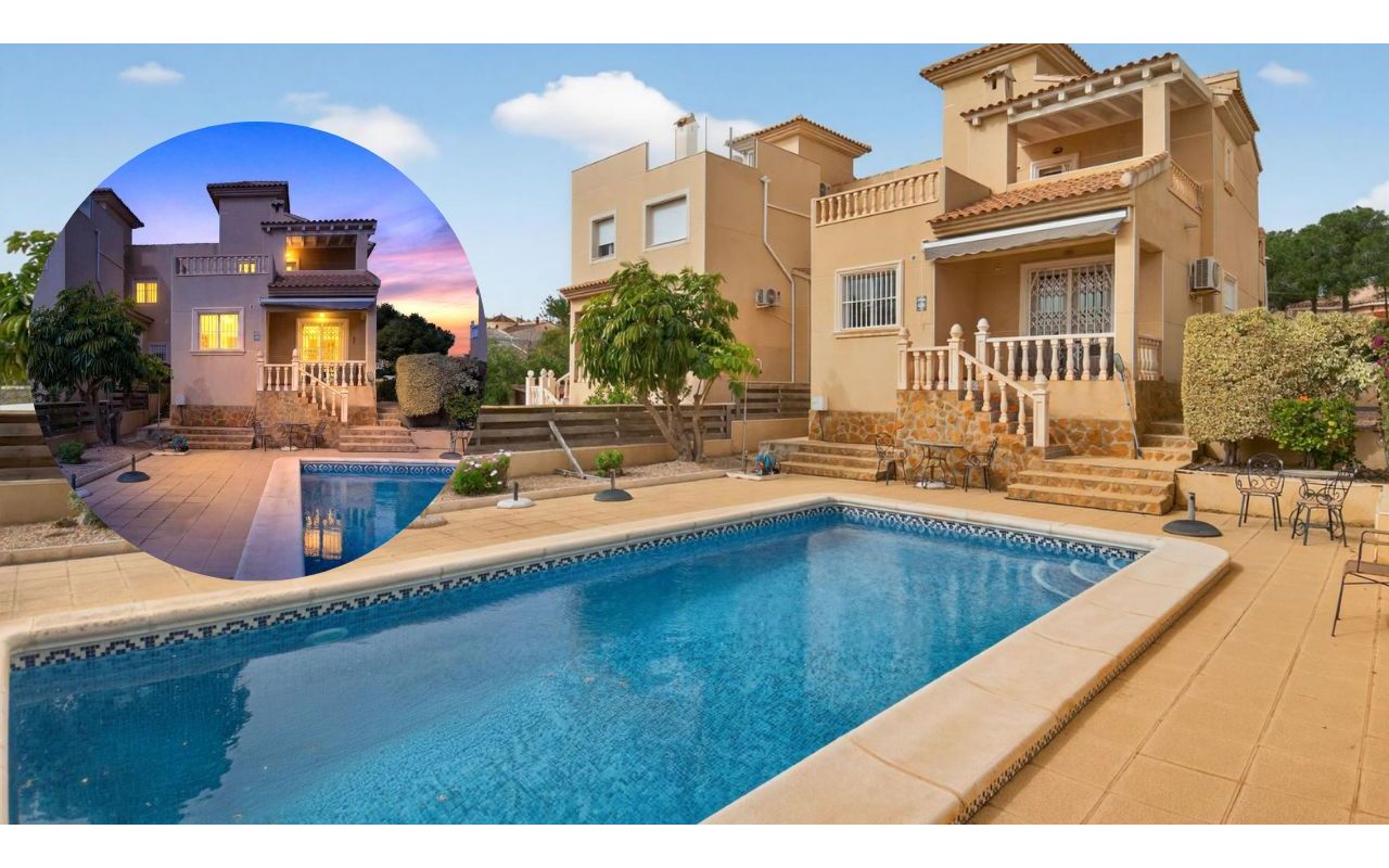 Eiendommen ligger på en romslig og opparbeidet tomt på 450 m², perfekt for utendørs ks og aktivitete, her har du privat svømmebasseng ideelt for avkjøling i det milde middelhavsklimaet.