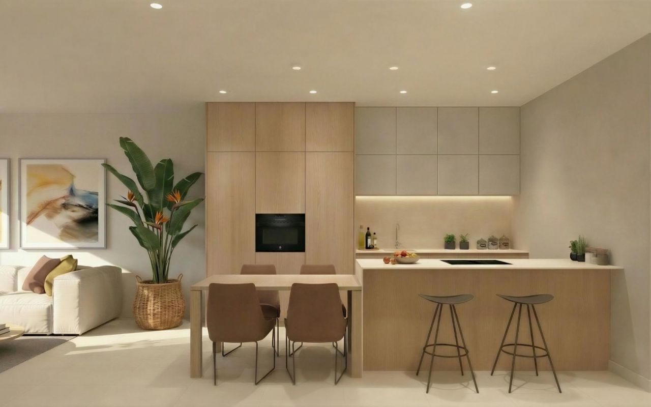 Nybyggede villaer på El Alba Mediterranean Resort i Torre Pacheco Moderne livsstil i et voksende turistmål Oppdag dette eksklusive nybyggprosjektet som består av kun 6 eneboliger og tomannsboliger, beliggende på El Alba Mediterranean Resort i Torre Pacheco, Murcia. Dette fremadstormende boligområdet kombinerer moderne arkitektur, fritidsfasiliteter og en avslappet middelhavsstil. Beliggenheten mellom golfklubben Terrazas de la Torre og byen Roldán tilbyr ro uten å ofre nærheten til alle nødvendige fasiliteter, som supermarkeder, restauranter, barer og banker. Moderne villaer med privat uteområde Disse moderne villaene er i én etasje og har 2 soverom og 2 bad, hvorav det ene er en-suite. Hver bolig har et åpent kjøkken og stue, designet for å maksimere naturlig lys og komfort. Hjørnetomtene har en privat hage med svømmebasseng og parkeringsplass. Interiøret er stilig og funksjonelt, noe som gjør disse boligene ideelle for permanent opphold, feriebruk eller som investering. Soverommene er utstyrt med innebygde garderober med skuffer, og badene leveres fullt utstyrt med speilskap og dusjvegger. Spesifikasjoner og finish av høy kvalitet Alle villaene er bygget etter en høy standard, med materialer og finish av topp kvalitet. Kjøkkenene er fullt utstyrt med hvitevarer, mens Porcelanosa-finish er brukt i kjøkken, bad og flislegging, noe som gir et snev av luksus. Andre tilleggsfunksjoner inkluderer utvendige vinduer med termisk isolasjon og doble vinduer, motoriserte persienner i soverommene og forhåndsinstallasjon for kanalisert klimaanlegg. Fasiliteter i komplekset og lokale tilbud Alba Mediterranean Resort tilbyr et utmerket utvalg av fellesfasiliteter designet for alle aldersgrupper. Beboerne kan nyte et klubbhus med restaurant og avslapningsområde, et felles svømmebasseng, en bowlinghall, paddle-tennisbaner og et lekeområde for barn. Et lite kjøpesenter er for tiden under bygging i komplekset, noe som vil gi ytterligere bekvemmelighet med butikker og tjenester i nærheten av hjemmet. Utmerket beliggenhet nær golfbaner, strender og flyplasser Komplekset er omgitt av flere prisbelønte golfbaner, noe som gjør det til et attraktivt valg for golfentusiaster. Strendene ved Mar Menor ligger rundt 15 km unna og byr på rolige farvann og et bredt utvalg av vannsport. Murcia internasjonale lufthavn ligger bare 20 km unna, mens Cartagena ligger rundt 30 km unna og byen Murcia rundt 40 km. Alicante lufthavn ligger omtrent 90 km unna. Enkel tilgang til motorveinettet gjør det mulig å reise raskt og praktisk gjennom hele regionen. Ditt nye hjem på Costa Cálida Disse nybygde villaene på El Alba Mediterranean Resort tilbyr utmerket valuta for pengene, et moderne design og en strategisk beliggenhet nær golfbaner, strender og fasiliteter. Kontakt oss i dag for mer informasjon eller for å avtale en visning og sikre deg en plass i dette spennende nye prosjektet i Torre Pacheco.