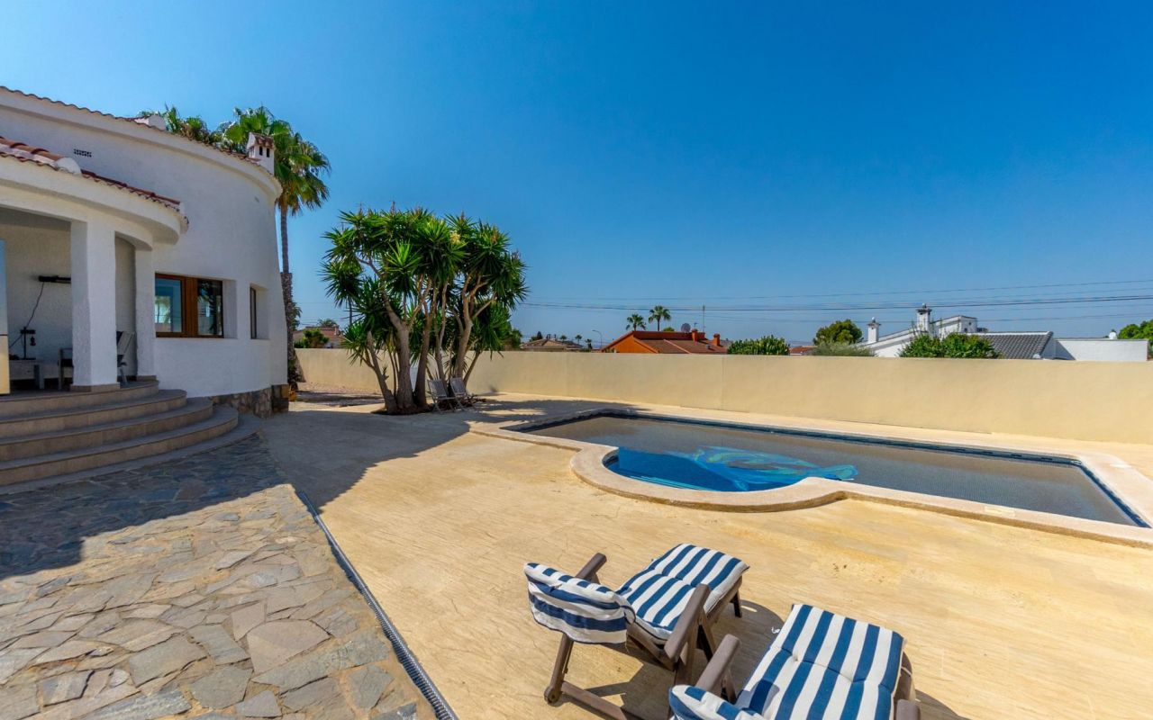 Imagine enjoying your breakfast with views of the pool and garden from the open terrace, or spending your days by the pool soaking up the warm Mediterranean sun. The exterior of this property is impressive, featuring a nearly 900m2 plot, offering ample space for outdoor activities and relaxation. The delightful private pool, built in 2011 and updated with new LED lights in 2023, is perfect for cooling off on hot days, while the covered terrace provides an ideal setting for social gatherings.