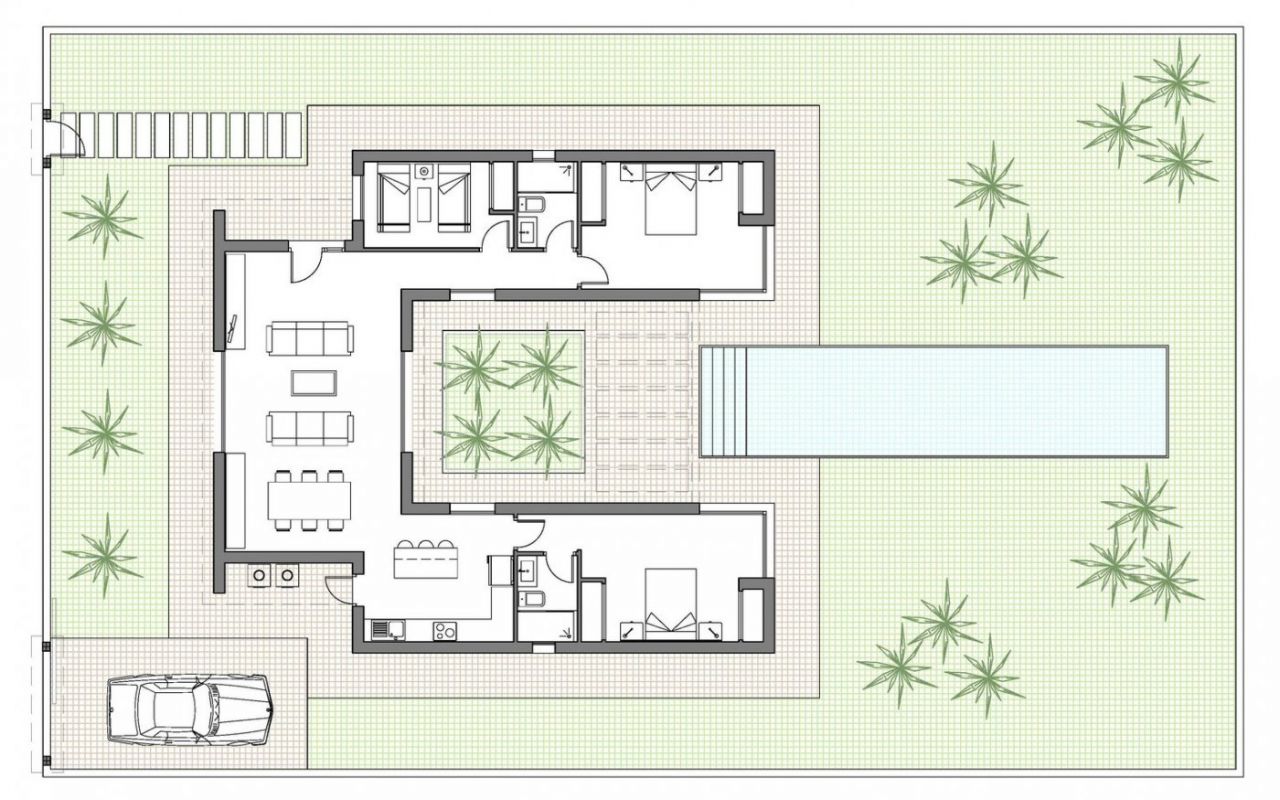 NEW BUILD MODERN VILLAS IN BENIJOFAR New Build villas located in Benijófar, a privileged area of the Costa Blanca, equipped with all services, 20 minutes from Alicante Airport, near the beautiful beaches of Guardamar and several golf courses. It is a modern style villas consisting of spacious living-dining room with an open-plan kitchen, 3 bedrooms( one of them en-suite) and 2 bathrooms. It also has a private plot with terrace, parking area, private pool, Mediterranean-style garden with great views. The house also has hot and cold air conditioning, video intercom and security door. Benijofar it is a lovely village with a charming church and all services such as supermarkets, pharmacies, banks, restaurants and natural park located very close to the villas. There are several golf courses close by as well as water parks in nearby Rojales and Torrevieja. Benijófar located a few minutes from the N-332 and AP-7. Just 30 minutes from Alicante airport, 10 minutes from the beaches of Guardamar and Torrevieja.