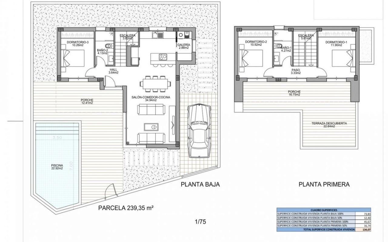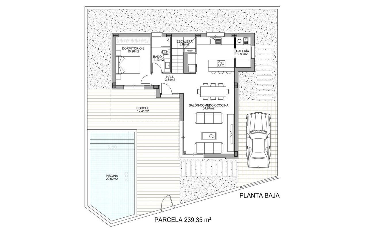 NEW BUILD MODERN VILLAS IN BENIJOFAR New Build villas located in Benijófar, a privileged area of the Costa Blanca, equipped with all services, 20 minutes from Alicante Airport, near the beautiful beaches of Guardamar and several golf courses. It is a modern style villas consisting of spacious living-dining room with an open-plan kitchen, 3 bedrooms( one of them en-suite) and 2 bathrooms. It also has a private plot with terrace, parking area, private pool, Mediterranean-style garden with great views. The house also has hot and cold air conditioning, video intercom and security door. Benijofar it is a lovely village with a charming church and all services such as supermarkets, pharmacies, banks, restaurants and natural park located very close to the villas. There are several golf courses close by as well as water parks in nearby Rojales and Torrevieja. Benijófar located a few minutes from the N-332 and AP-7. Just 30 minutes from Alicante airport, 10 minutes from the beaches of Guardamar and Torrevieja.