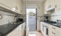 On the ground floor: a bright living-dining room, separate fully equipped kitchen with garden access, one bedroom, and a bathroom with shower.