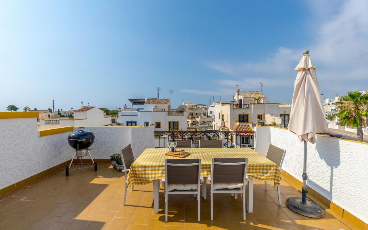From this floor, an internal staircase leads to a private roof terrace, ideal for sunbathing all year with views of the Torrevieja salt lakes.