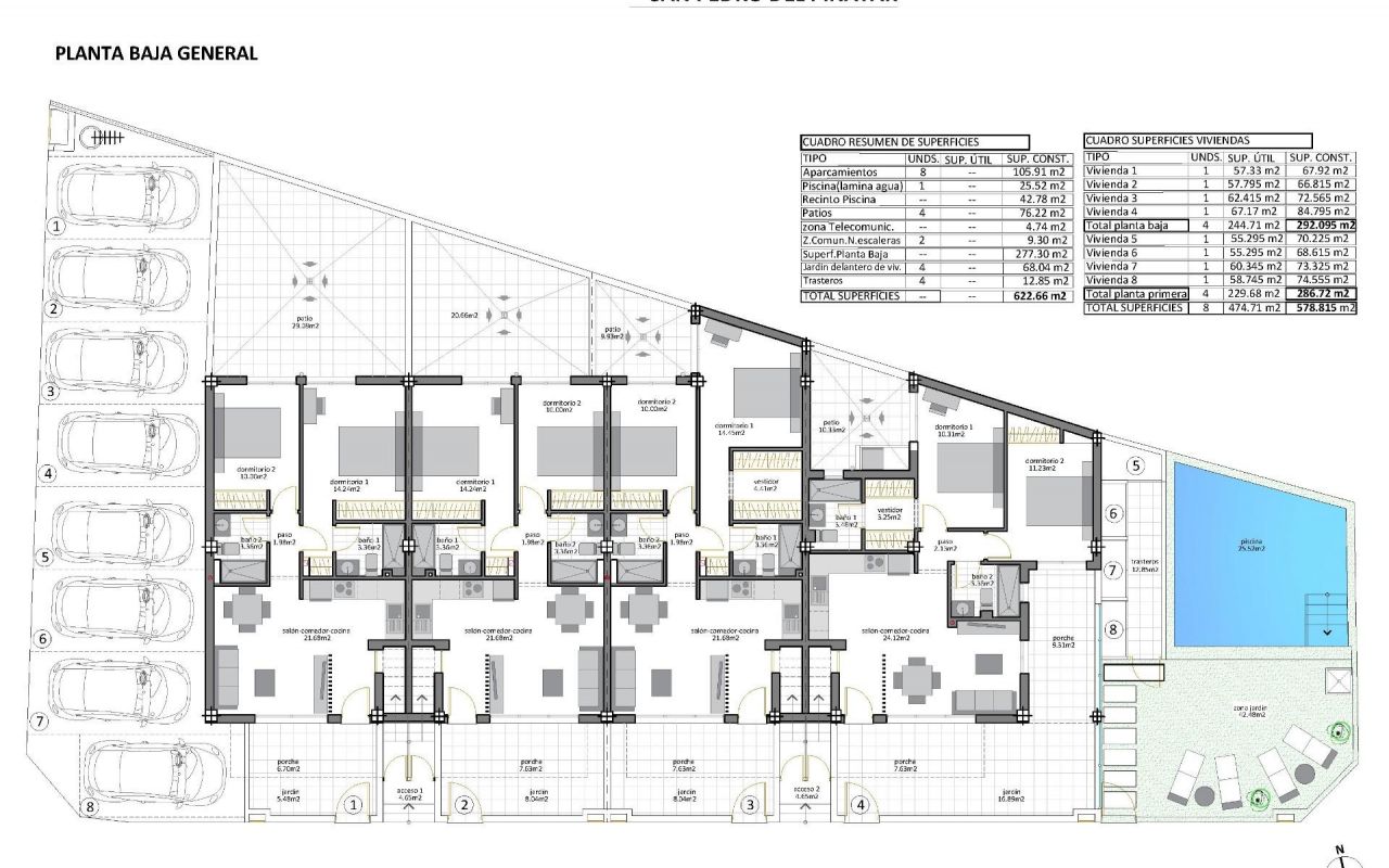 New Build Bungalows in San Pedro del Pinatar – Prime Location Just 500m from the Beach Exclusive Boutique-Style Homes Near the Coast Discover these elegant new construction bungalows in the heart of San Pedro del Pinatar, just 500 meters from the stunning beaches of the Mar Menor. This boutique development includes only eight signature homes, combining modern design, comfort, and a tranquil coastal lifestyle. Available Models to Suit Your Lifestyle Garden/Ground Floor Model: Features a front terrace and a spacious rear patio, perfect for outdoor living. Penthouse Loft Model: Includes a private rooftop solarium and a front terrace, offering open views and an abundance of sunlight. Garden/Ground Floor Model Details Step into a bright living space that seamlessly connects to the dining area and a fully fitted kitchen. Large sliding glass doors let in natural light, creating an open and inviting ambiance. The layout includes two spacious bedrooms, with the master bedroom boasting an en-suite bathroom, as well as a modern family bathroom. Penthouse Model Highlights Access the penthouse via a private staircase leading to a large terrace. Inside, an open-plan lounge and dining area blend with a fully fitted kitchen. Two bedrooms are included, with the master bedroom offering an en-suite. A private rooftop solarium, accessible from the kitchen, provides an ideal spot for relaxation or entertaining. Additional ground-floor storage ensures convenience. Key Features and Amenities Internal and external LED lighting. Fully fitted kitchen with induction hob, oven, dishwasher, and fridge/freezer. Air conditioning installed. Designated parking space. Landscaped communal garden with a swimming pool for residents. San Pedro del Pinatar: Coastal Charm and Convenience Located on the beautiful Mar Menor and Mediterranean coastlines, San Pedro del Pinatar is a haven for watersports, sailing enthusiasts, and beach lovers. The nearby Lo Pagán area offers natural mud baths, calm waters, and year-round amenities, including shops, restaurants, and leisure facilities. Distances to Key Points of Interest: Dos Mares Shopping Center: 5 km Murcia/Corvera Airport: 30 km Alicante Airport: 75 km Local golf courses: 10–20 km Marina and sailing clubs: 2 km Reserve Your Dream Home Today With completion scheduled for late 2025, now is the perfect time to secure your new home in San Pedro del Pinatar. Don’t miss this opportunity to enjoy a blend of modern elegance and coastal tranquility. Contact us today to learn more or arrange a visit!
