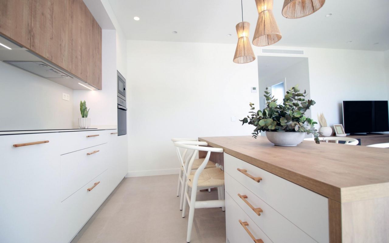 NEW BUILD RESIDENTIAL COMPLEX IN TORRE DE LA HORADADA New Build residential complex of bungalow apartments with communal pool in Torre de la Horadada located 800m from the beach. All properties has 2-3 bedrooms, 2 bathrooms, open plan kitchen with the lounge area, fitted wardrobes and terrace. All properties has private gardens and parking space. Plus bungalows on the top floor has private solarium. Torre de la Horadada is located south of Alicante in a beautiful location on the coast. The beautiful beaches of Torre de la Horadada and Mil Palmeras have fine sand beautiful promenade. There are lots of restaurants, bars and shops, also water sports, diving and snorkelling. It is well connected just 40 minutes from Alicante and Murcias Corvera airports, with large commercial shopping centres and multiple golf courses all within easy reach.