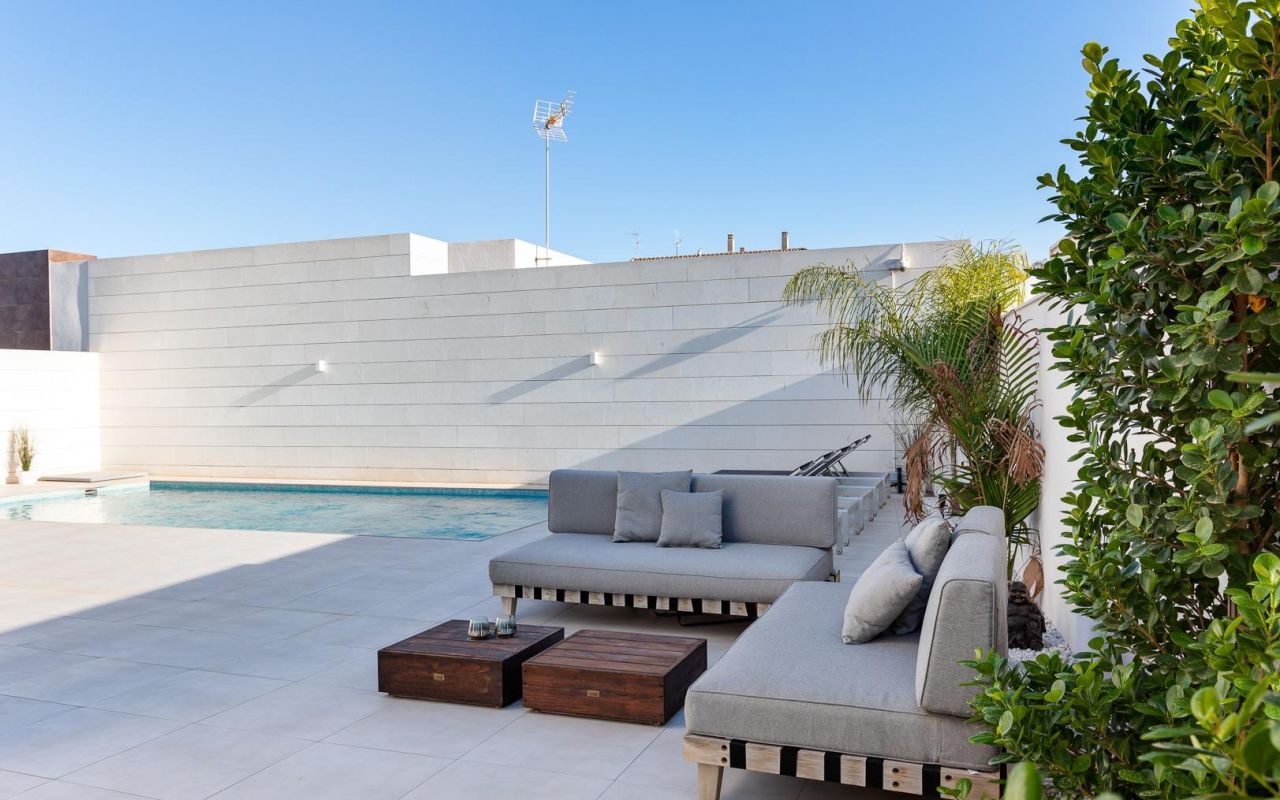 MEDITERRANEAN VILLA IN URBAN AREA CLOSE TO THE SEA Well cared for and designed for your well-being, this house is clad in natural stone. The double height of the living room and the natural light in the bathrooms are some of the surprises you will find in this villa. The villa has a spacious living-dining-kitchen, 3 bedrooms, 2 bathrooms (one en suite), a garage on the plot, a private garden of about 100m2, terraces. Electrical appliances Landscaped areas with artificial grass and paved terrace area. Pre-installation of air conditioning by means of ducts in the living-dining room and bedrooms. Built-in wardrobe. Located in the municipality of Pilar de la horadada, it has an optimal location, with easy access to schools (200 metres), medical centres (250 metres), pharmacies (100 metres), beaches (1.6 km) and surrounded by parks, green areas and transport services.