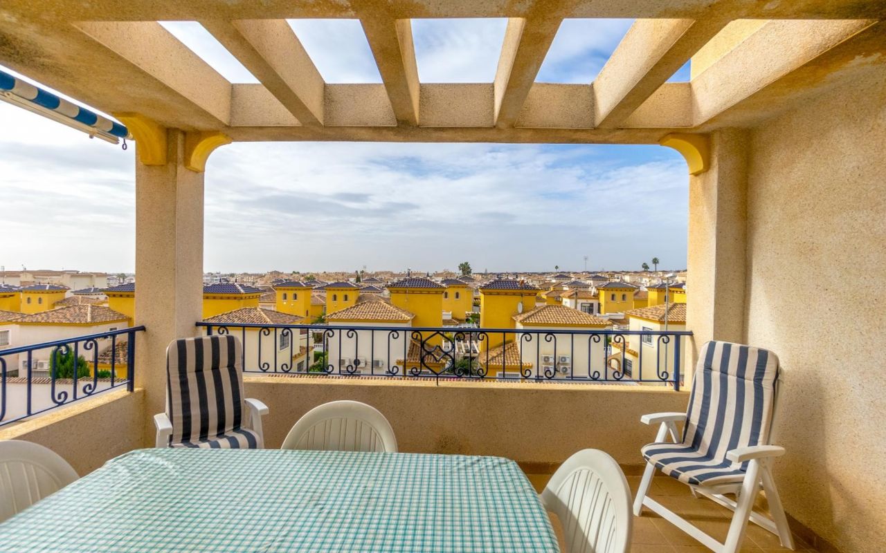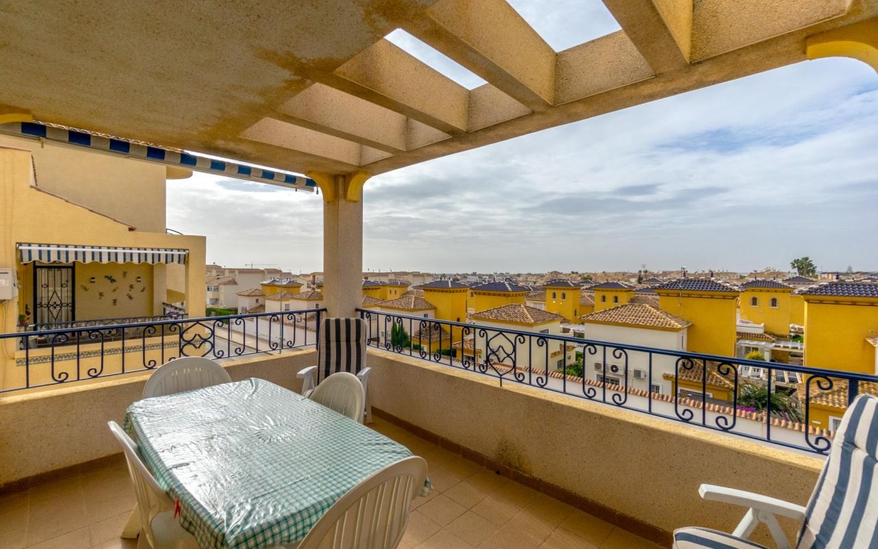 Presentamos, este encantador ático de 2 dormitorios, ideal para quienes buscan un espacio acogedor y bien distribuido. La vivienda cuenta con 1 baño completo, una cocina semi-independiente equipada con electrodomésticos, una galería cerrada, y salón-comedor perfecto para la vida diaria. Además, podrás disfrutar de una espaciosa terraza techada con vistas despejadas, ideal para momentos de relax, comidas al aire libre, y reuniones en cualquier época del año. Su orientación sur garantiza una excelente entrada de luz natural, que aporta calidez y luminosidad a cada espacio.