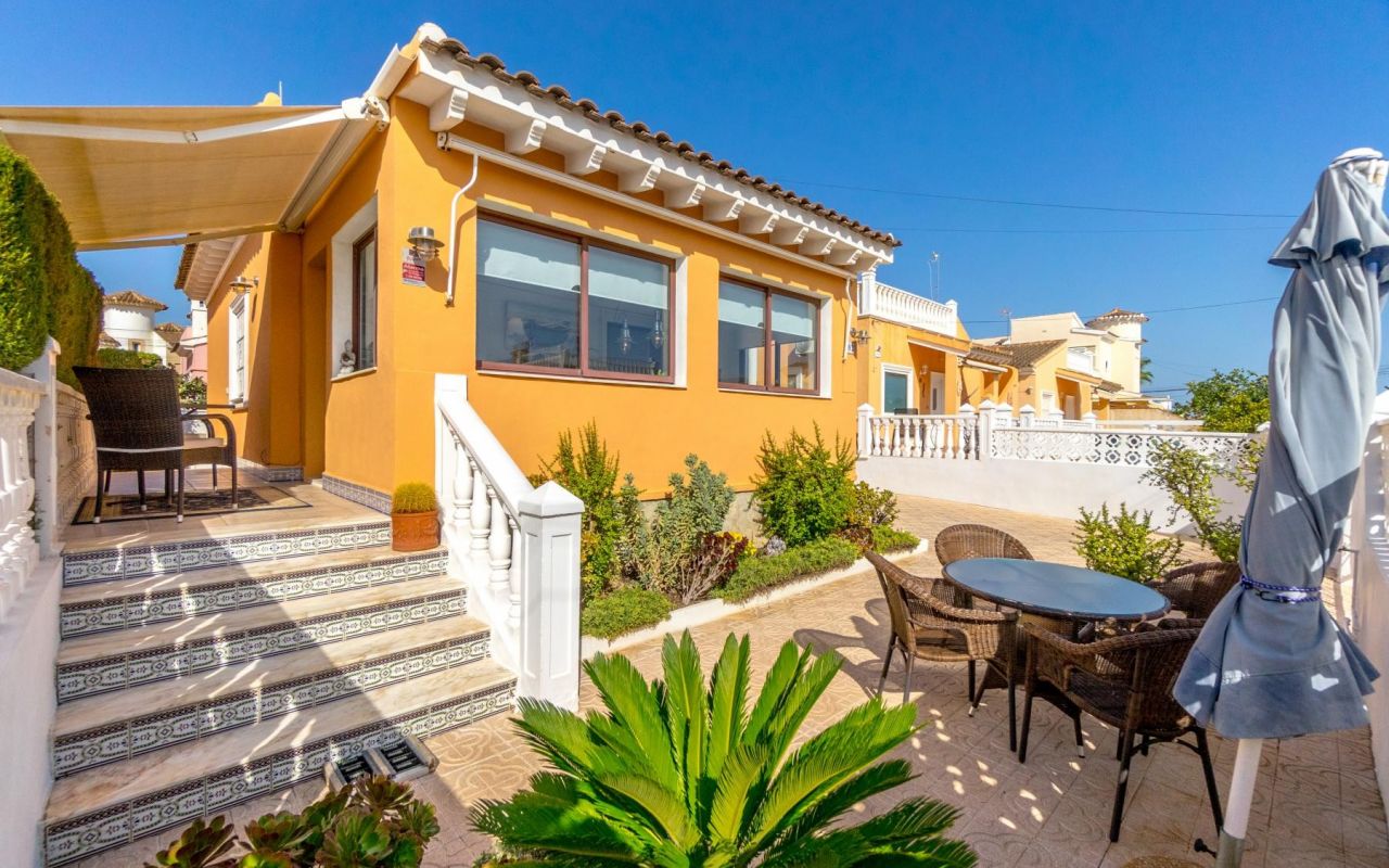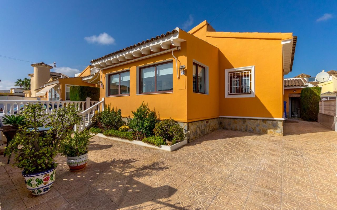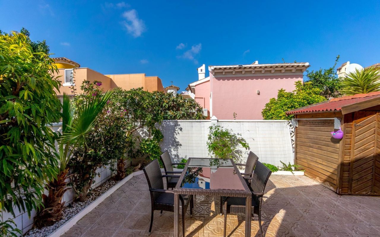 Esta propiedad en Playa Flamenca, Orihuela Costa, lo tiene todo para convertirse en tu hogar ideal. Con una parcela de 239 m², este chalet ofrece un hermoso jardín donde puedes aparcar cómodamente dentro de tu propia propiedad. También cuenta con un amplio patio trasero perfecto para disfrutar de cenas familiares o momentos de relajación al aire libre, rodeado de un ambiente íntimo y natural.