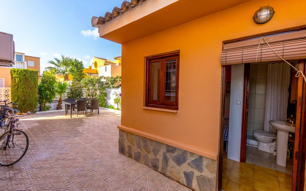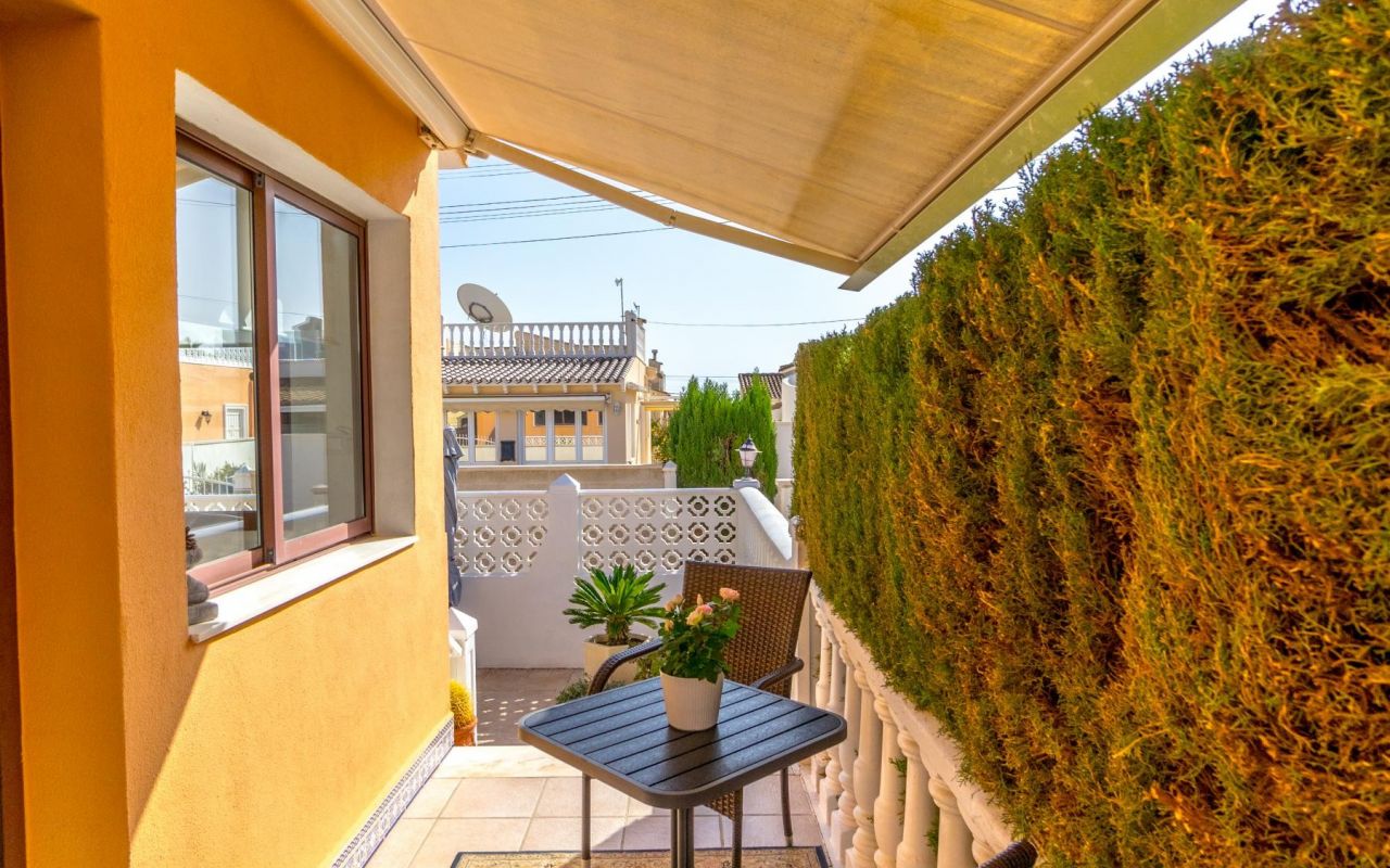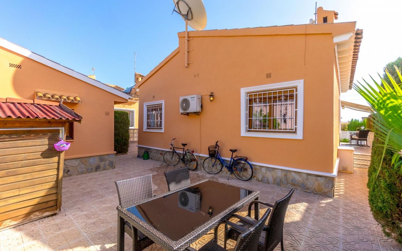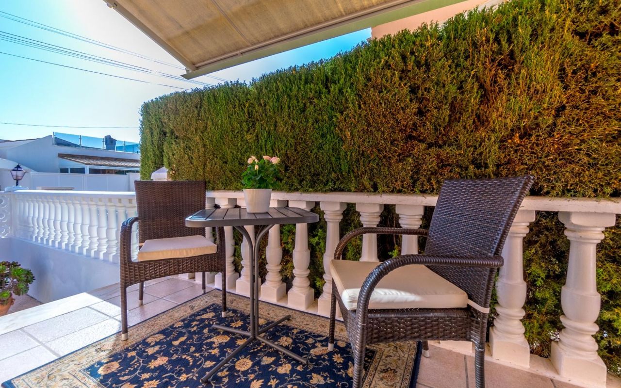 Esta propiedad en Playa Flamenca, Orihuela Costa, lo tiene todo para convertirse en tu hogar ideal. Con una parcela de 239 m², este chalet ofrece un hermoso jardín donde puedes aparcar cómodamente dentro de tu propia propiedad. También cuenta con un amplio patio trasero perfecto para disfrutar de cenas familiares o momentos de relajación al aire libre, rodeado de un ambiente íntimo y natural.