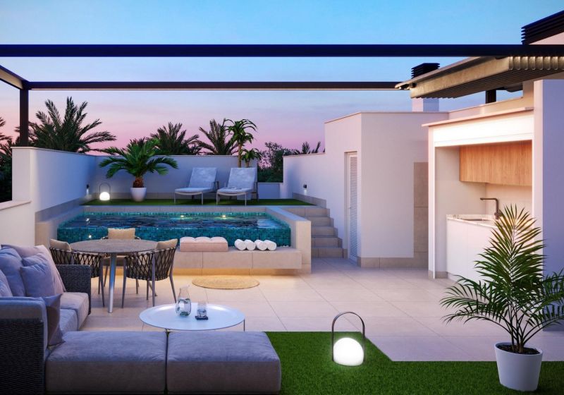 Apartamentos Turísticos de Lujo a Sólo 150m de la Playa de Las Higuericas - Torre de la Horadada Nueva Promoción Exclusiva con Licencia de Alquiler Incluida Bienvenido a un nuevo complejo residencial en Torre de la Horadada, a sólo 150 metros de las arenas doradas de la Playa de Las Higuericas. Este moderno proyecto ofrece 48 apartamentos turísticos completamente amueblados, todos ellos entregados con licencia de alquiler a corto plazo, lo que lo convierte en una inversión ideal para el alquiler vacacional o el disfrute personal. Elija entre 42 unidades de 3 dormitorios y 2 baños o 6 unidades de 2 dormitorios y 2 baños, todas ellas cuidadosamente diseñadas para maximizar el confort, el estilo y la funcionalidad. Diseños pensados para la vida en la costa Cada propiedad está diseñada para satisfacer las diferentes necesidades de estilo de vida: Las unidades de la planta baja cuentan con amplios jardines privados con vistas a las zonas comunes. Los apartamentos de la primera planta ofrecen amplias terrazas, algunas con vistas parciales al mar. Los áticos cuentan con solariums privados con vistas al mar y cocinas al aire libre, pérgolas, jacuzzis y césped artificial. Todas las viviendas incluyen una plaza de aparcamiento subterráneo privado y un trastero. La finalización de la primera fase está prevista para el verano de 2026. Totalmente equipadas y listas para entrar a vivir Estas viviendas se entregan totalmente equipadas para su ocupación inmediata, incluyendo: Mobiliario y decoración completos de estilo mediterráneo Cocinas totalmente equipadas con electrodomésticos Lavaderos independientes Calefacción por suelo radiante en toda la vivienda Aire acondicionado por conductos (frío/calor) Ropa de cama y menaje Las ventanas cuentan con persianas eléctricas y cristal termoacústico Climasun, mientras que los sistemas aerotérmicos de eficiencia energética proporcionan agua caliente. Zonas comunes de estilo resort para disfrutar todo el año La urbanización incluye amplias zonas comunes, como: Piscina exterior para adultos y niños Parque infantil Zonas verdes ajardinadas Zona de bienestar en el sótano con piscina cubierta climatizada, chorros de masaje, sauna y un gimnasio totalmente equipado Cada detalle ha sido diseñado para proporcionar a los residentes y huéspedes una experiencia mediterránea relajante y lujosa. Ubicación privilegiada con fácil acceso a las principales atracciones Esta inmejorable ubicación ofrece proximidad a lo mejor de la Costa Blanca y la Costa Cálida: Playa de Las Higuericas - 150 m Campo de Golf Lo Romero - 10 km Centro Comercial Dos Mares - 11 km Puerto de San Pedro del Pinatar - 8 km Aeropuerto de Murcia - 30 km Aeropuerto de Alicante - 65 km Asegure su inversión en la costa hoy mismo Si está buscando una casa de vacaciones o una inversión para alquiler, esta es su oportunidad de poseer una propiedad de primera calidad cerca de la playa en una de las zonas más solicitadas. ¡Póngase en contacto con nosotros ahora para obtener más información o programar su visita a Torre de la Horadada!