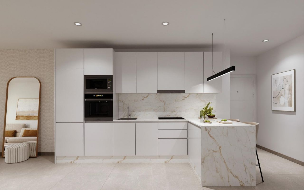 Apartamentos de nueva construcción en Torrevieja A solo 600 m de la Playa del Cura Ubicación privilegiada en el corazón de Torrevieja Descubra estos apartamentos y áticos a estrenar en una de las zonas más cotizadas de Torrevieja, a solo 600 m de la Playa del Cura y a 300 m del paseo marítimo. Situado en el centro de la ciudad, este animado barrio ofrece todos los servicios esenciales a poca distancia, incluyendo supermercados, tiendas, restaurantes, cafeterías y transporte público. Torrevieja es una conocida ciudad costera de la Costa Blanca, famosa por su clima mediterráneo templado, su animado ambiente y su estilo de vida junto al mar durante todo el año. Apartamentos modernos con distribuciones espaciosas Esta exclusiva promoción nueva consta de solo 12 apartamentos y áticos de 1 o 3 dormitorios, diseñados para ofrecer comodidad, funcionalidad y estilo contemporáneo. Los apartamentos de las plantas intermedias cuentan con amplias terrazas, mientras que los áticos disfrutan de un solárium privado adicional, ideal para tomar el sol o comer al aire libre. Todas las viviendas incluyen una cocina abierta conectada con el salón-comedor, lo que crea interiores luminosos y acogedores. Los dormitorios cuentan con armarios empotrados y los baños están totalmente equipados con muebles, espejos y mamparas de ducha. Hay plazas de aparcamiento opcionales disponibles con un coste adicional. Acabados de calidad y características de eficiencia energética Los apartamentos están construidos con materiales de alta calidad y un fuerte enfoque en la eficiencia energética. La carpintería exterior de aluminio incluye tecnología de rotura de puente térmico y doble acristalamiento para el aislamiento térmico y acústico. Las persianas motorizadas añaden comodidad y seguridad. Cada vivienda cuenta con preinstalación de aire acondicionado y calefacción por conductos, puertas de entrada reforzadas y puertas interiores lacadas en blanco. El agua caliente se produce mediante un sistema aerotérmico, lo que reduce el consumo de energía y mejora la sostenibilidad. Solárium en la azotea con piscina comunitaria Los residentes pueden disfrutar de un solárium exclusivo en la azotea con piscina comunitaria, accesible por ascensor o escaleras. Esta zona privada es perfecta para relajarse, tomar el sol y disfrutar de las vistas panorámicas de la ciudad. Ofrece un refugio tranquilo sobre las animadas calles de Torrevieja y añade un valor significativo a la promoción. Estilo de vida y alrededores de Torrevieja Torrevieja es conocida por su extenso litoral, sus playas de arena y sus emblemáticas salinas. El Parque Natural de las Lagunas de La Mata y Torrevieja se encuentra a unos 5 km y ofrece rutas de senderismo y paisajes únicos. Varios campos de golf, como Villamartin Golf y Las Colinas Golf, se encuentran a entre 12 y 18 km. El puerto deportivo y el puerto de Torrevieja están a aproximadamente 1 km. El aeropuerto de Alicante está a unos 45 km y el aeropuerto internacional de Murcia a unos 65 km, ambos con excelentes conexiones europeas. Su hogar en la costa le espera No pierda esta oportunidad de adquirir un moderno apartamento de nueva construcción cerca de la playa en Torrevieja. Póngase en contacto con nosotros hoy mismo para obtener más información o concertar una visita privada.
