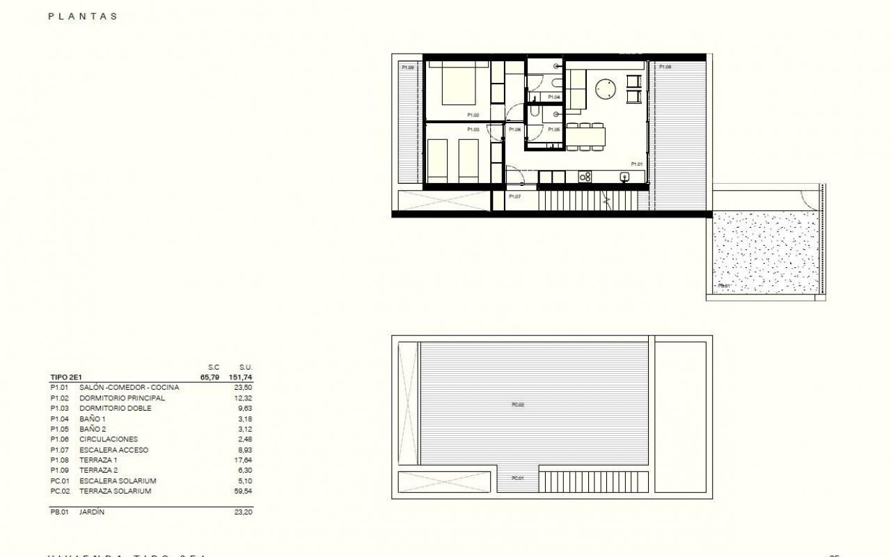 Apartamentos residenciales de nueva construcción en Los Balcones, Torrevieja Viviendas modernas en una zona residencial privilegiada Descubra este atractivo complejo residencial de nueva construcción situado en Los Balcones, uno de los barrios más populares y consolidados de las afueras de Torrevieja. Ubicado en un entorno tranquilo con excelente acceso a todos los servicios esenciales, este complejo se encuentra a solo 4 km de las playas de arena de la Costa Blanca. Los Balcones es conocido por su ambiente relajado, sus amplias calles, sus zonas verdes y su proximidad a hospitales, supermercados, restaurantes y centros comerciales, lo que lo hace ideal para vivir todo el año o para pasar las vacaciones. Apartamentos contemporáneos con espacios exteriores privados El complejo consta de 52 apartamentos modernos construidos en una superficie total de 6700 m2. Cada propiedad incluye una plaza de aparcamiento privada y un trastero en el sótano. Las viviendas ofrecen 2 o 3 dormitorios y 2 baños, uno de ellos en suite. Los compradores pueden elegir entre apartamentos en planta baja con jardín privado o viviendas en plantas superiores con una amplia terraza y solárium privado. Estas distribuciones están diseñadas para maximizar la luz natural y proporcionar cómodos espacios interiores y exteriores para disfrutar del clima mediterráneo durante todo el año. Zonas comunes diseñadas para el relax El proyecto se distribuye en cuatro bloques que rodean una gran zona común central. Este corazón verde de la urbanización cuenta con una piscina con zona infantil y unos jardines con un bonito diseño paisajístico. Estos espacios compartidos son perfectos para relajarse, socializar y pasar tiempo en familia en un entorno seguro y agradable. Características de calidad y diseño energéticamente eficiente Cada apartamento está construido según los estándares modernos e incluye la preinstalación de aire acondicionado por conductos, un sistema de agua caliente aerotérmica para mejorar la eficiencia energética, iluminación exterior y carpintería exterior con doble acristalamiento. Las cocinas están completamente equipadas, ofreciendo un espacio funcional y elegante para la vida diaria. Estas características garantizan un alto nivel de confort, un bajo mantenimiento y un consumo energético reducido, lo que hace que las viviendas sean prácticas y sostenibles. Excelente ubicación cerca de playas y campos de golf Los Balcones ofrece una ubicación estratégica cerca de muchos puntos de interés. Las playas de Torrevieja están a unos 4 km. Varios campos de golf de renombre, como Villamartin Golf, Las Ramblas Golf y Campoamor Golf, se encuentran a entre 10 y 15 km. El Hospital Universitario de Torrevieja está a menos de 2 km, lo que añade comodidad y tranquilidad. El centro de Torrevieja está a unos 5 km, conectado por autobús con Los Balcones, donde encontrará una amplia gama de tiendas, restaurantes, locales culturales y un animado puerto deportivo. El aeropuerto internacional de Alicante se encuentra a unos 42 km, lo que facilita las conexiones internacionales. El puerto de Torrevieja está a unos 6 km. Ideal para vivir o invertir Con su diseño moderno, sus excelentes zonas comunes y su ubicación privilegiada cerca de playas, campos de golf y servicios, este nuevo complejo residencial en Los Balcones Torrevieja es perfecto como residencia permanente, casa de vacaciones o oportunidad de inversión. Póngase en contacto con nosotros hoy mismo para obtener más información o concertar una visita a estos apartamentos de nueva construcción en Los Balcones, Torrevieja.