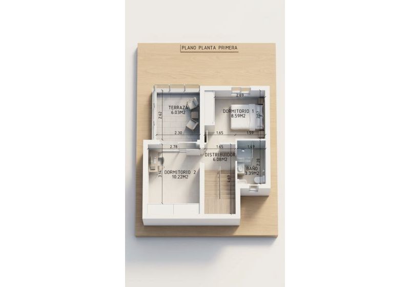 En la planta superior se ubican dos dormitorios, uno de ellos con terraza privada, y un baño completo.