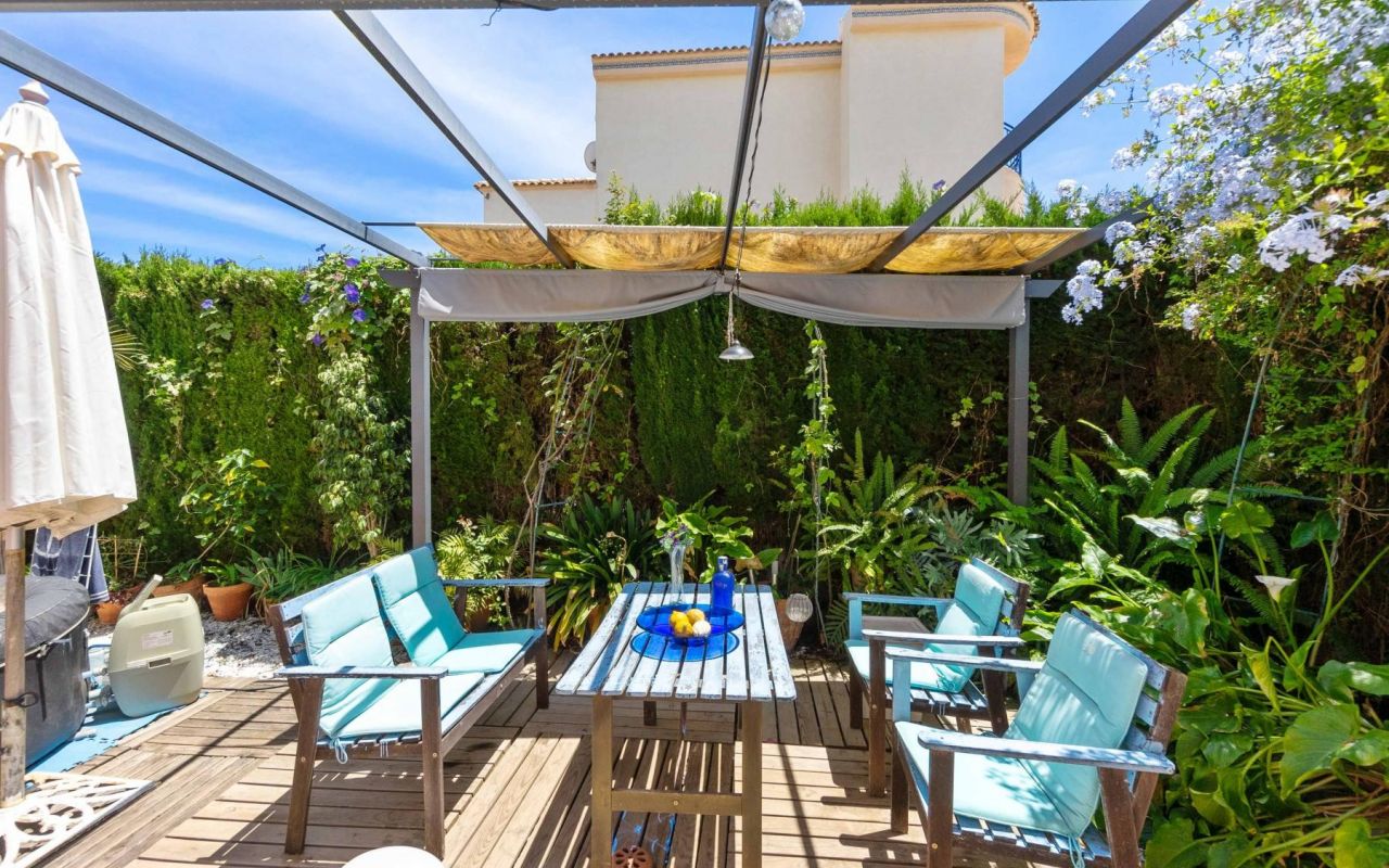 Villa individuelle ensoleillée avec deux étages. Au premier étage, nous trouverons 2 chambres chacune avec son placard, 1 salle de bain, salon, cuisine américaine entièrement équipée et au deuxième étage 1 grande chambre avec placard et salle de bain en suite et accès direct à la terrasse avec auvent pour profiter du soleil toute la journée. La maison a un terrain de 185m2 avec une terrasse carrelée à l'avant avec une entrée et un espace pour garer la voiture, à l'arrière un grand patio de jardin avec beaucoup d'intimité. Grâce à son orientation sud, c'est une maison très ensoleillée et lumineuse, surtout comme maison habituelle ou de vacances.. Vendu entièrement meublé et électroménagers.