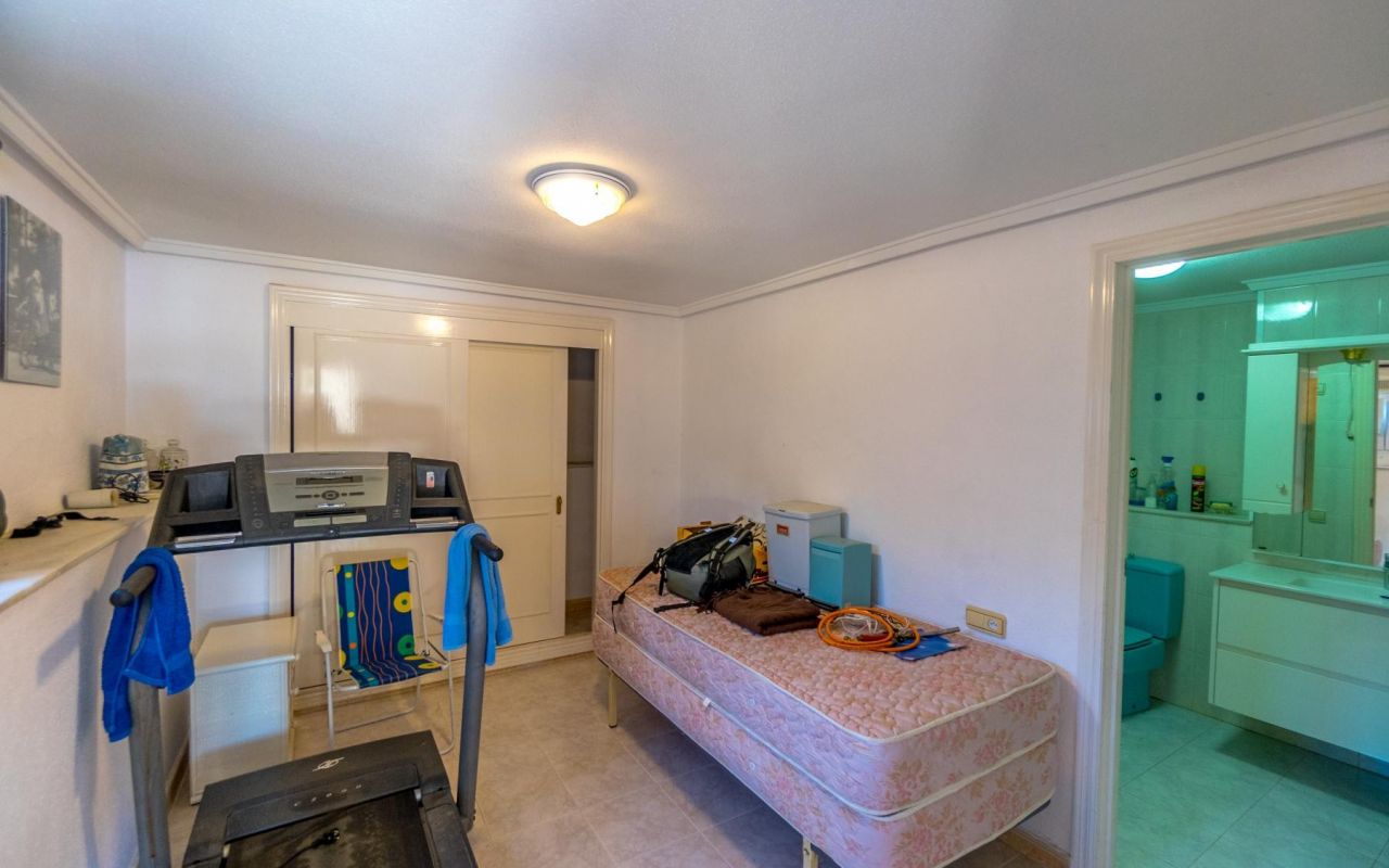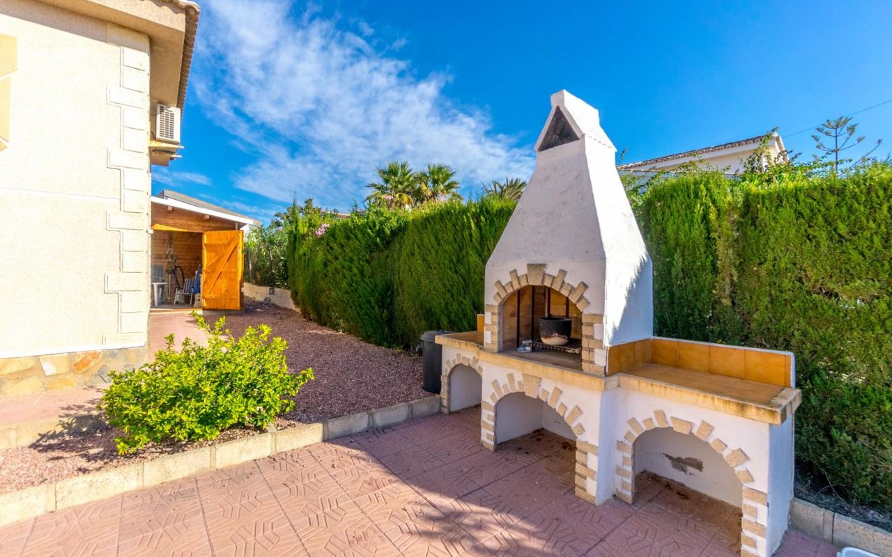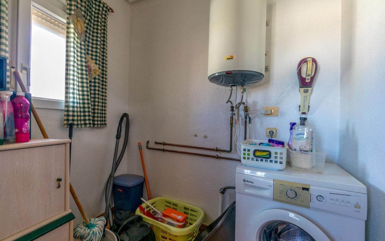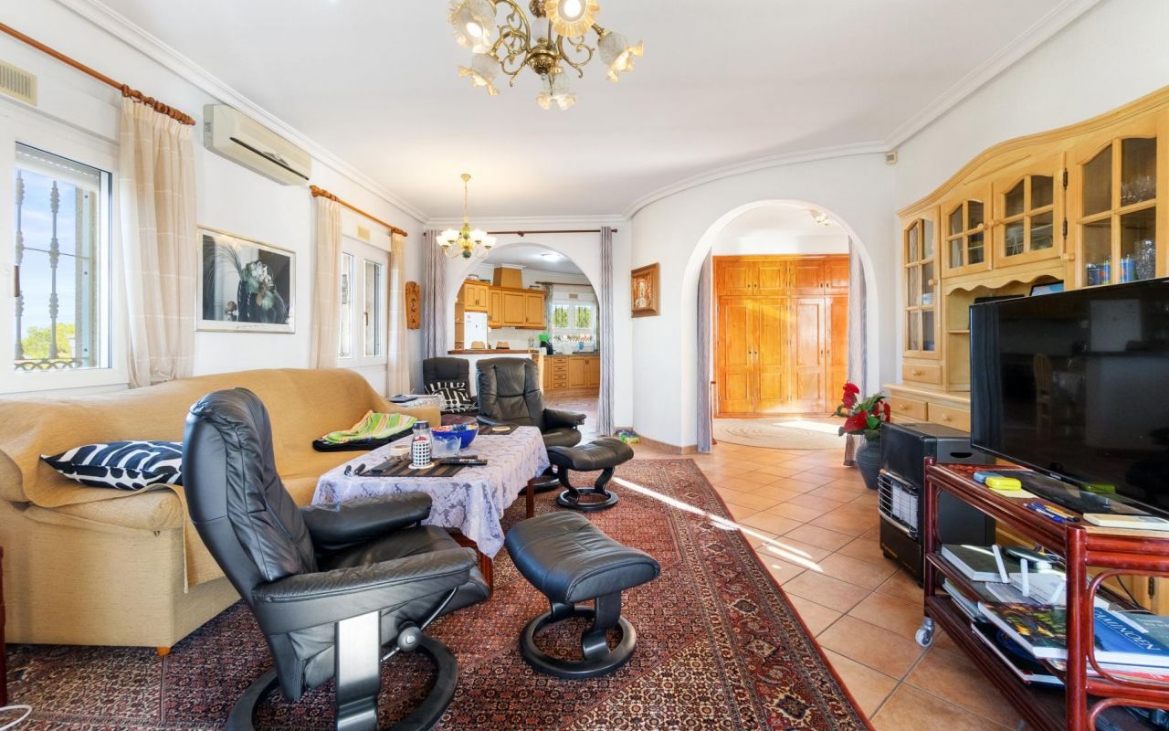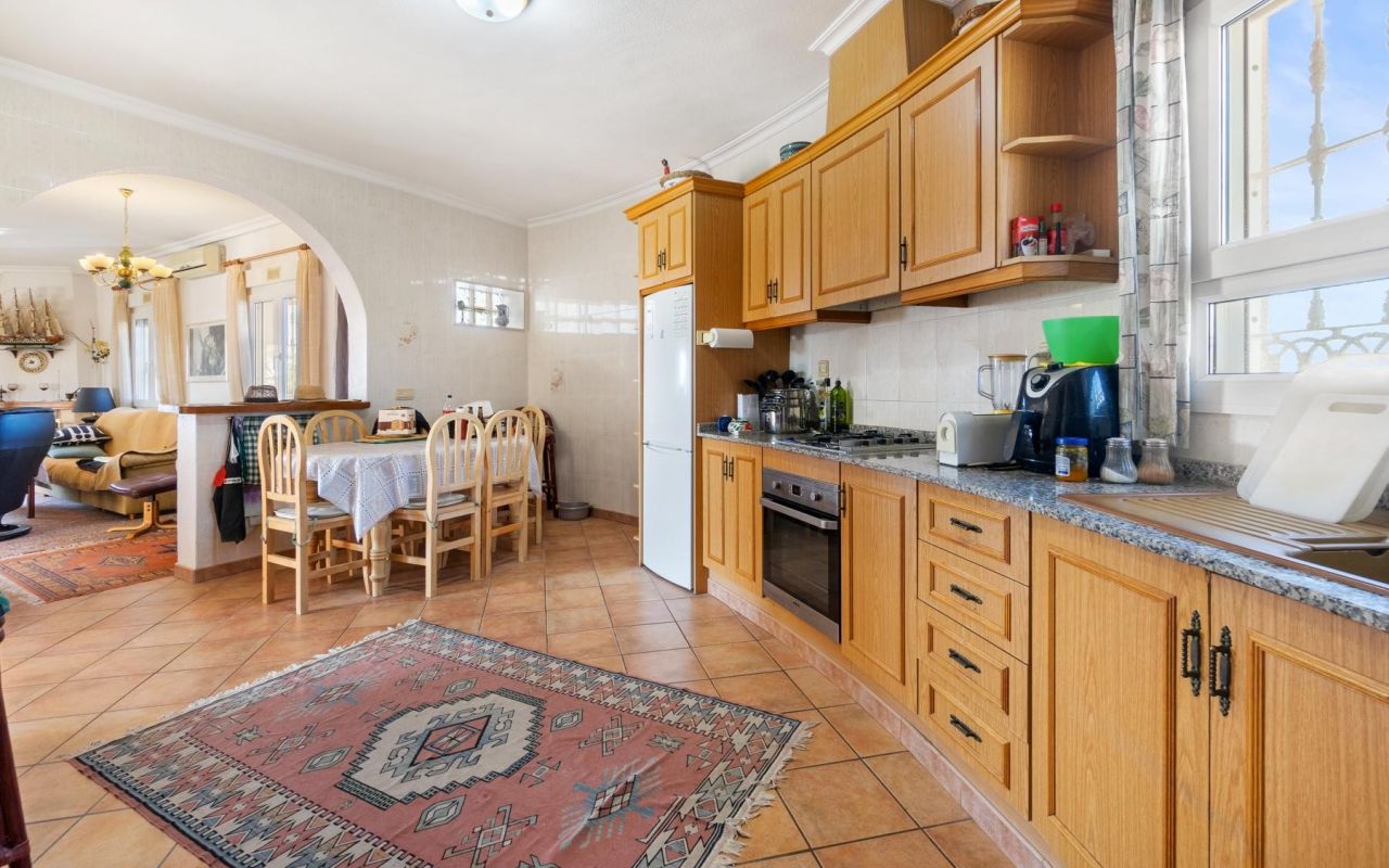 La propriété, de plain-pied pour plus de confort, vous accueille avec un hall d'entrée spacieux qui communique avec les pièces principales : 3 chambres lumineuses, dont une avec salle de bains en-suite, et une autre salle de bains supplémentaire. Sa cuisine ouverte entièrement équipée, avec débarras et buanderie, est intégrée au salon, créant ainsi un espace idéal pour les réunions de famille ou d'amis. Depuis le salon, vous avez accès à une terrasse semi-vitrée, parfaite pour se détendre tout en profitant des températures douces de la Costa Blanca.