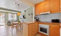 Charmante maison mitoyenne en angle avec un jardin carrelé de 105 m², idéale pour profiter de l’extérieur toute l’année, organiser des repas en famille ou garer la voiture en toute tranquillité. Elle dispose également d’une véranda ensoleillée, parfaite pour les journées plus fraîches.