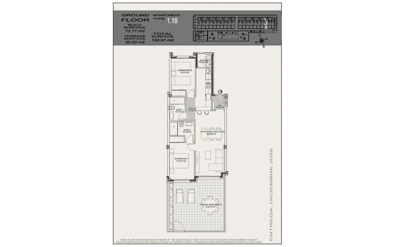 Nouveau développement résidentiel à Torrevieja, à seulement 1 km de la mer Appartements modernes avec 2 et 3 chambres Situé dans le quartier animé d'Altos del Sol à Torrevieja, ce nouveau complexe résidentiel propose une variété d'appartements de 2 et 3 chambres. Les appartements du rez-de-chaussée sont dotés de jardins privés, tandis que ceux du dernier étage disposent de solariums privés pour une détente exclusive en plein air. En outre, le complexe comprend une maison de ville, destinée à ceux qui recherchent plus d'espace et d'intimité. Chaque unité comprend une place de parking souterrain et des salles de stockage sont disponibles en option. Des espaces communs spacieux et des équipements adaptés aux familles Le complexe résidentiel est conçu avec soin et comprend de vastes espaces communs, avec des jardins paysagers qui créent un environnement paisible. Les familles peuvent profiter d'une grande piscine commune avec une zone réservée aux enfants, idéale pour se détendre et se rencontrer sous le chaud soleil méditerranéen. Le projet est situé à environ 1 km de la « Playa de Los Locos », offrant un accès pratique à la plage pour les résidents. Finitions de qualité supérieure et caractéristiques écoénergétiques Ces logements se distinguent par leurs finitions de haute qualité et leur souci du détail. Chaque unité est équipée d'un système de panneaux solaires photovoltaïques de 600 W, ce qui constitue une solution énergétique respectueuse de l'environnement. Parmi les autres caractéristiques de qualité, citons les barbecues intégrés aux solariums, les portes d'entrée blindées, les armoires encastrées avec aménagement intérieur, les meubles de salle de bains avec pare-douche et le chauffage au sol dans les salles de bains, garantissant ainsi confort et style dans tous les recoins. Un emplacement idéal à proximité des services et des attractions Ce lotissement est situé à proximité de tous les services essentiels, ce qui en fait un endroit idéal pour les résidents permanents et les vacanciers. Altos del Sol est connu pour son quartier bien desservi, avec des magasins locaux, des restaurants et des lieux de divertissement accessibles à pied. L'aéroport d'Alicante-Elche se trouve à 45 minutes de route (43 km), tandis que le centre commercial Habaneras est à seulement 3 km, offrant une expérience de shopping complète. Découvrez le style de vie méditerranéen de Torrevieja Torrevieja, située dans le sud d'Alicante, offre la quintessence de l'expérience méditerranéenne. Avec plus de 300 jours de soleil par an et une température moyenne annuelle de 20ºC, les habitants peuvent profiter d'un temps magnifique tout au long de l'année. La ville est réputée pour sa riche gastronomie, avec des ingrédients frais provenant à la fois de la mer et des fermes locales. En outre, Torrevieja possède des plages pittoresques, des promenades, des musées et de nombreuses activités adaptées aux familles avec enfants, ce qui garantit un mode de vie rempli de loisirs et de détente. Venez découvrir Torrevieja Que vous soyez à la recherche d'une communauté balnéaire dynamique ou d'une retraite paisible, ce projet offre une occasion unique de profiter du meilleur du charme côtier de Torrevieja. Découvrez tout ce que cette belle ville a à offrir, de son climat chaud à son riche patrimoine culturel et culinaire.