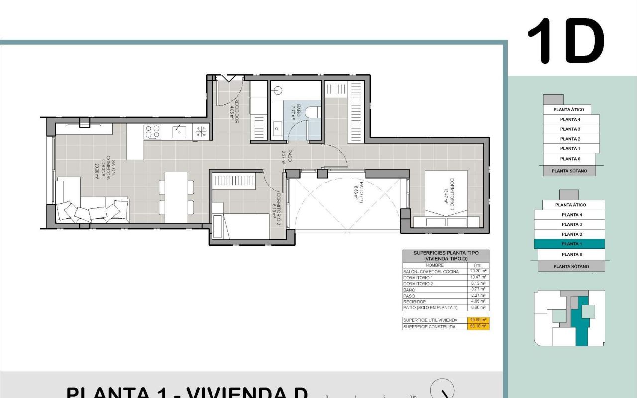 Élégant immeuble résidentiel à 60 m de la plage El Acequion à Torrevieja 23 logements fonctionnels avec un choix d'appartements de 1, 2 et 3 chambres et de penthouses avec de grandes terrasses privées. Places de parking en sous-sol en option pour plus de commodité. Profitez de la vie à quelques pas de la Méditerranée. Entouré de tout ce dont vous avez besoin (supermarchés, écoles, restaurants, parcs et bars de plage), c'est l'endroit idéal pour vivre toute l'année ou profiter d'une résidence secondaire. Chaque logement est soigneusement conçu pour maximiser la lumière naturelle, l'espace et la fonctionnalité. Certaines maisons disposent d'une terrasse privée ou d'une buanderie. Sur le toit, les résidents peuvent profiter d'un solarium commun avec un espace lounge relaxant et une piscine, idéal pour profiter du soleil et de la brise marine toute l'année. Distances des points clés : Plage d'Acequión : 60 m Centre-ville de Torrevieja : 500 m Port de plaisance Marina Salinas : 1,5 km Hôpital universitaire de Torrevieja : 5,5 km Parcours de golf Villamartín : 10 km Centre commercial Habaneras : 3 km Aéroport d'Alicante : 45 km Finitions haut de gamme dans chaque logement Les logements ont été construits avec des matériaux de première qualité et un design contemporain : Menuiserie extérieure en aluminium avec rupture de pont thermique et double vitrage Stores motorisés dans les chambres. Porte d'entrée blindée Cuisine équipée avec éléments hauts et bas Eau chaude produite par un système aérothermique Pré-installation de la climatisation Salles de bains avec meubles, miroirs et vitres fixes dans les douches. Ascenseur dans l'immeuble Vivez à deux pas de la mer et du centre-ville Torrevieja est l'une des villes côtières les plus dynamiques et les plus en expansion de la Costa Blanca, célèbre pour son climat, ses plages, ses salines et sa vie culturelle. Ce complexe est idéal comme résidence permanente, investissement ou résidence secondaire pour les vacances. Contactez-nous dès aujourd'hui pour obtenir plus d'informations ou pour organiser une visite et vous assurer votre maison en bord de mer à Torrevieja. Torrevieja est l'une des villes côtières les plus dynamiques et en pleine croissance de la Costa Blanca, célèbre pour son climat, ses plages, ses salines et sa vie culturelle. Cette promotion est idéale comme résidence principale, investissement ou résidence secondaire pour les vacances. Contactez-nous dès aujourd'hui pour plus d'informations ou pour organiser une visite et assurez-vous votre maison en bord de mer à Torrevieja.