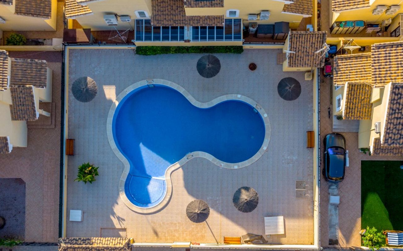 Située dans une résidence calme et bien entretenue avec piscine communautaire et espaces verts, elle offre un cadre idéal pour profiter du soleil méditerranéen. À quelques minutes des belles plages de La Zenia et Playa Flamenca, et des terrains de golf renommés tels que Villamartín Golf Club et Real Club de Golf Campoamor.