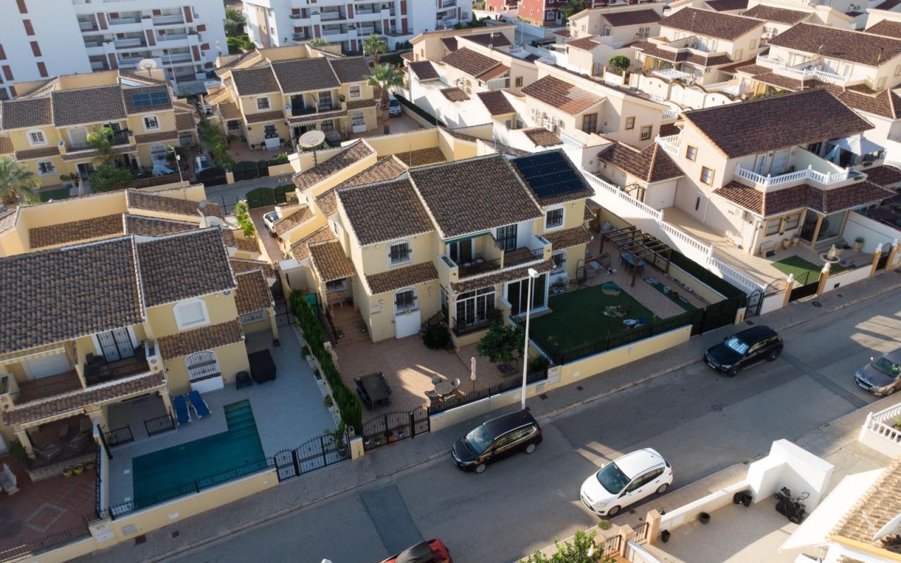 Découvrez le charme de la Méditerranée dans cette agréable maison mitoyenne à deux étages, située dans le quartier recherché de Los Dolses, Orihuela Costa. Un endroit idéal pour vivre ou passer vos vacances, grâce à son excellent climat et son ambiance paisible tout au long de l’année.