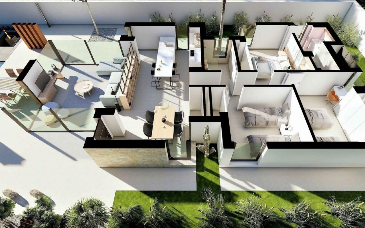 VILLAS NEUVES A SAN FULGENCIO Villas neuves à San Fulgencio, à seulement 5 km de la plage. Les villas offrent 3 chambres, 2 salles de bains et une cuisine spacieuse, une salle à manger, un salon, une piscine avec cascade et deux piscines : une piscine de 1,95x2,60 m et 0,6 m de profondeur, et une piscine de 5,60x2,60 m, entre 1 et 1,5 m de profondeur variable. Un grand porche orienté au sud permet la continuité du salon avec l'extérieur, s'ouvrant sur un espace extérieur moderne et fonctionnel où l'on peut profiter de la piscine privée, du barbecue, du chillout et du grand jardin qui l'entoure. Les lignes simples et claires du mobilier contribuent à son intégration au reste de la maison. Les détails en bois ajoutent de la chaleur à l'atmosphère. Les salles de bains, où les couleurs sont combinées à des tons naturels et chauds, créent une atmosphère chaleureuse qui, associée à la relation directe avec l'extérieur, vous permet de vous connecter à la nature et d'atteindre de grands moments de détente. La chambre principale dispose d'un patio privé qui, avec la lumière qui pénètre par les fenêtres, crée une atmosphère relaxante, parfaite pour le repos et la détente. San Fulgencio est un village agréable avec plusieurs restaurants et magasins. Il est très bien situé, à proximité des fantastiques plages de La Marina et de la ville de Guardamar, légèrement plus grande. La ville de San Fulgencio est située à environ 30 minutes de l'aéroport d'Alicante-Elche, à 6 km du terrain de golf le plus proche et à seulement 5 km de la plage la plus proche.