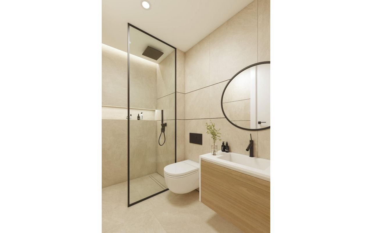 Propriétés modernes avec 2 et 3 chambres, 2 salles de bains, un salon-salle à manger lumineux avec cuisine intégrée et une terrasse accueillante.