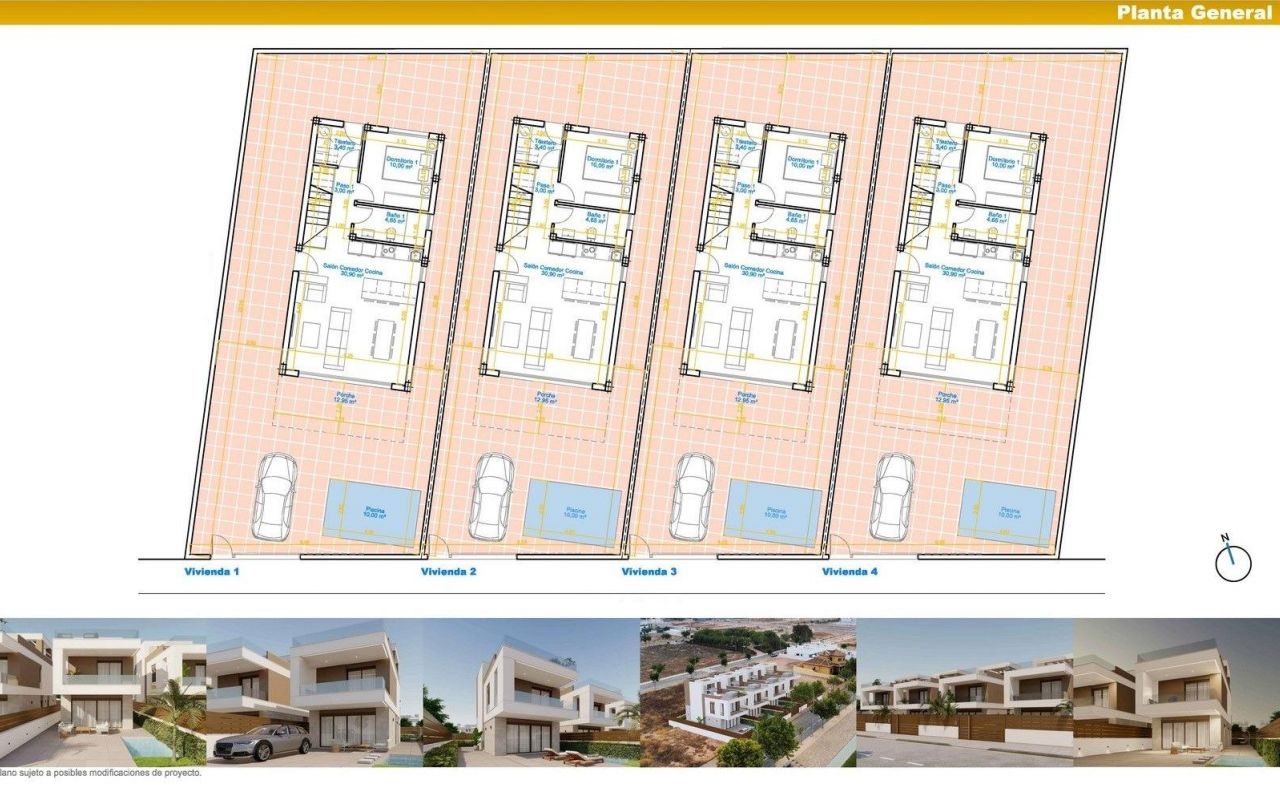 Villas neuves avec piscine privée à Pilar de la Horadada, près de la plage Complexe immobilier exclusif de villas modernes sur la Costa Blanca Découvrez ce complexe immobilier de prestige composé de seulement quatre villas indépendantes à Pilar de la Horadada, l'une des villes côtières les plus attrayantes du sud de la Costa Blanca. Idéalement situées à seulement 2 km de la plage de Las Higuericas et à quelques pas du centre-ville, ces demeures offrent la combinaison parfaite entre intimité, commodité et art de vivre méditerranéen. Situées dans un quartier résidentiel calme et orientées plein sud, chaque villa bénéficie d’un ensoleillement tout au long de la journée, ce qui les rend particulièrement attrayantes pour les acheteurs internationaux à la recherche d’une vie en plein air toute l’année. Design contemporain avec options de personnalisation L’une des caractéristiques phares de ce programme immobilier est la possibilité de personnaliser votre maison en fonction de votre style de vie et de vos préférences. Ces villas modernes sont conçues dans un souci de fonctionnalité et de confort, alliant des lignes architecturales épurées à des espaces de vie pratiques. Chaque propriété s’étend sur deux étages, plus un solarium privé sur le toit. Le rez-de-chaussée comprend un spacieux salon-salle à manger ouvert avec cuisine intégrée, un accès direct au porche avant, une chambre, une salle de bains et un débarras donnant sur le patio arrière. Le premier étage offre deux chambres supplémentaires et deux salles de bains, dont une chambre principale avec salle de bains attenante. Les deux chambres donnent sur des terrasses privées, créant des espaces lumineux et aérés. Solarium privé et espaces de vie extérieurs Le solarium sur le toit est conçu pour profiter du climat méditerranéen ; il est équipé d’une cuisine d’été, d’une douche extérieure et d’une pré-installation pour un jacuzzi et des panneaux solaires. Chaque villa comprend également une piscine privée et un parking sur le terrain. Ces espaces extérieurs offrent le cadre idéal pour se détendre, recevoir et profiter du style de vie ensoleillé de la Costa Blanca tout au long de l’année. Finitions haut de gamme et équipements modernes Les villas sont construites selon des normes élevées et comprennent des équipements haut de gamme tels qu’une porte de sécurité renforcée, une cuisine entièrement équipée avec appareils électroménagers, la climatisation centralisée, des volets électriques et un système aérothermique pour l’eau chaude. Les salles de bains sont entièrement équipées avec des meubles, des miroirs, des parois de douche et le chauffage au sol. Un ensemble d’éclairage LED et des espaces de rangement supplémentaires renforcent encore le confort et la fonctionnalité. Emplacement de choix à proximité des plages et des parcours de golf Pilar de la Horadada est réputée pour son charme espagnol traditionnel, sa rue principale animée et ses excellentes commodités locales, notamment ses boutiques, ses restaurants et ses cafés. La ville offre un accès facile à certaines des plus belles plages et des meilleurs parcours de golf de la région. Les principales distances sont les suivantes : plage de Las Higuericas à 2 km, plage de Torre de la Horadada à 3 km, plage de Mil Palmeras à 3 km, Lo Romero Golf à 6 km, aéroport international de Murcie à 45 km et aéroport d'Alicante à 75 km. Une opportunité idéale d'investissement ou de résidence secondaire Ces villas neuves offrent une excellente opportunité d'acquérir une propriété moderne près de la plage, dans un emplacement très prisé de la Costa Blanca. Contactez-nous dès aujourd'hui pour obtenir plus d'informations ou pour organiser une visite et réserver votre nouvelle maison au soleil.