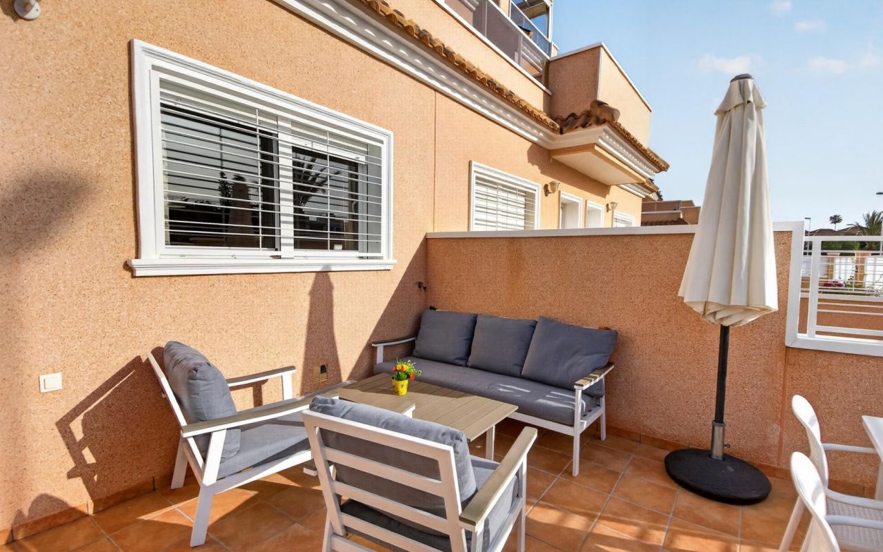 Maison mitoyenne de 2 étages avec solarium privé située dans le prestigieux Résidentiel Vista Azul XXII, dans le quartier de Punta Prima, Torrevieja. Cette maison allie design moderne, lumière naturelle et confort, idéale pour profiter du climat méditerranéen et de la tranquillité de la zone. Elle se trouve face à un parc, offrant une vue dégagée et un environnement agréable. Son orientation sud favorise une excellente luminosité tout au long de la journée.